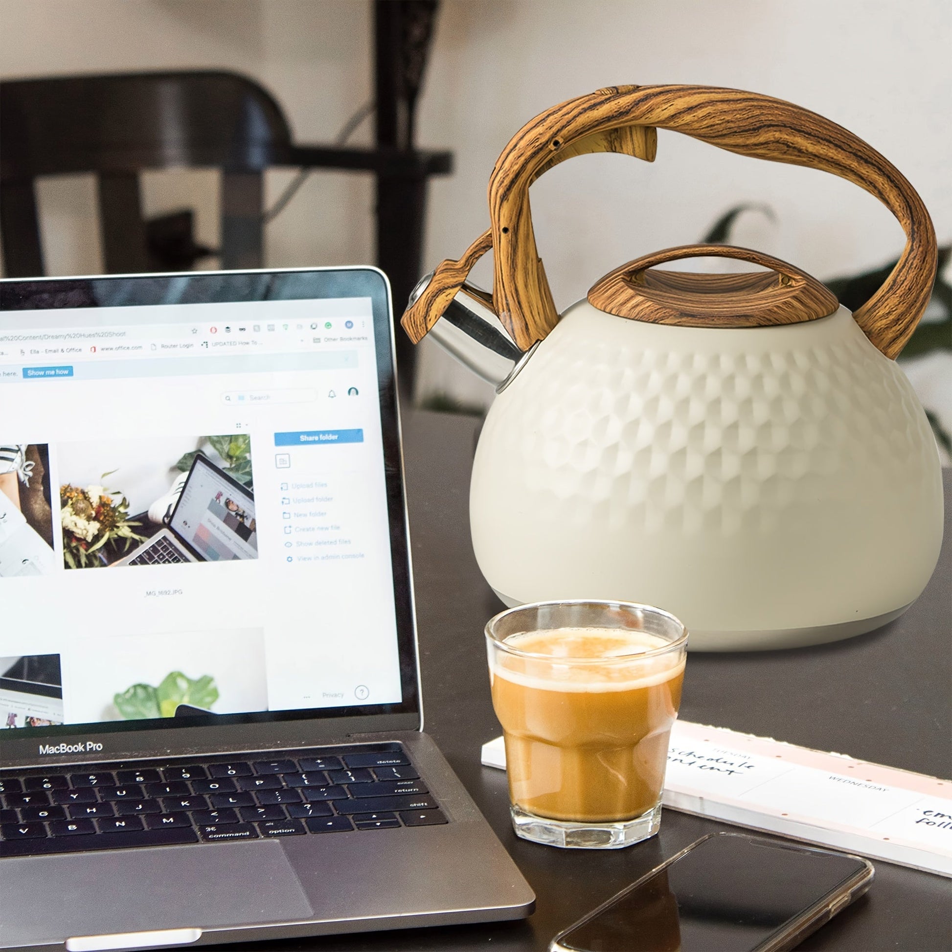 Stainless Steel Tea Kettle with Wooden Handle, Loud Whistle, Induction Compatible
