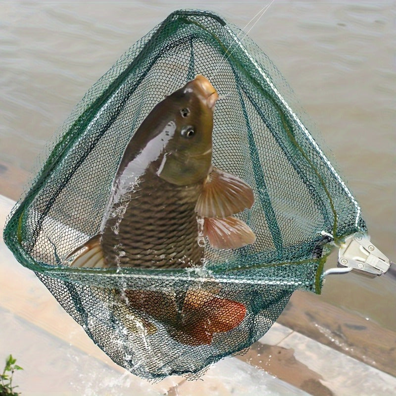 Stainless Steel Telescopic Fishing Landing Net Extendable Handle Green for Freshwater Fishing Kids Adults