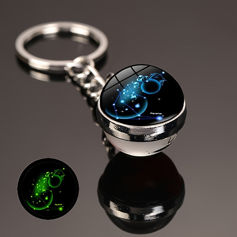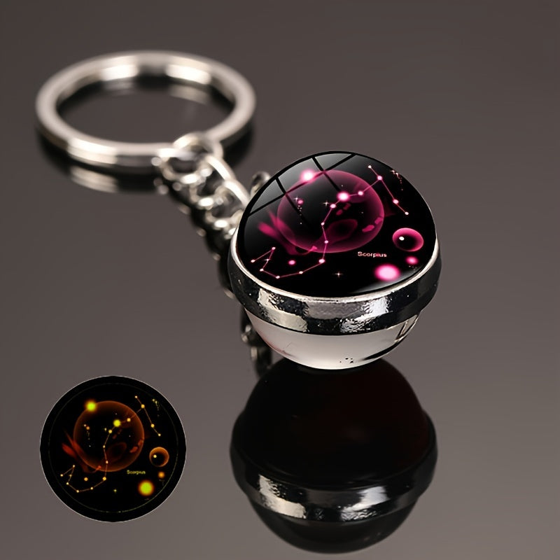 Starry Night Zodiac Keychain Double-Sided Glass Ball Glow-in-Dark Car Accessory