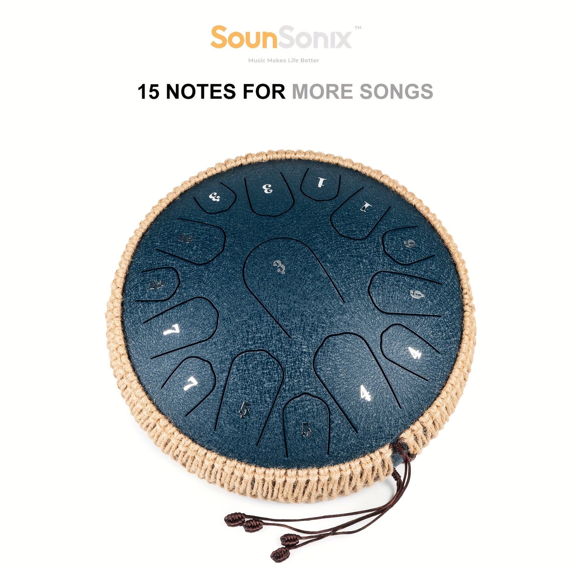 Steel Tongue Drum 33cm 15 Notes D Major Hand Pan with Mallets and Carry Bag