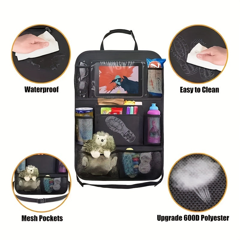 Car Seat Organizer with Back Storage Toy Hanging and Anti-Kick Pad