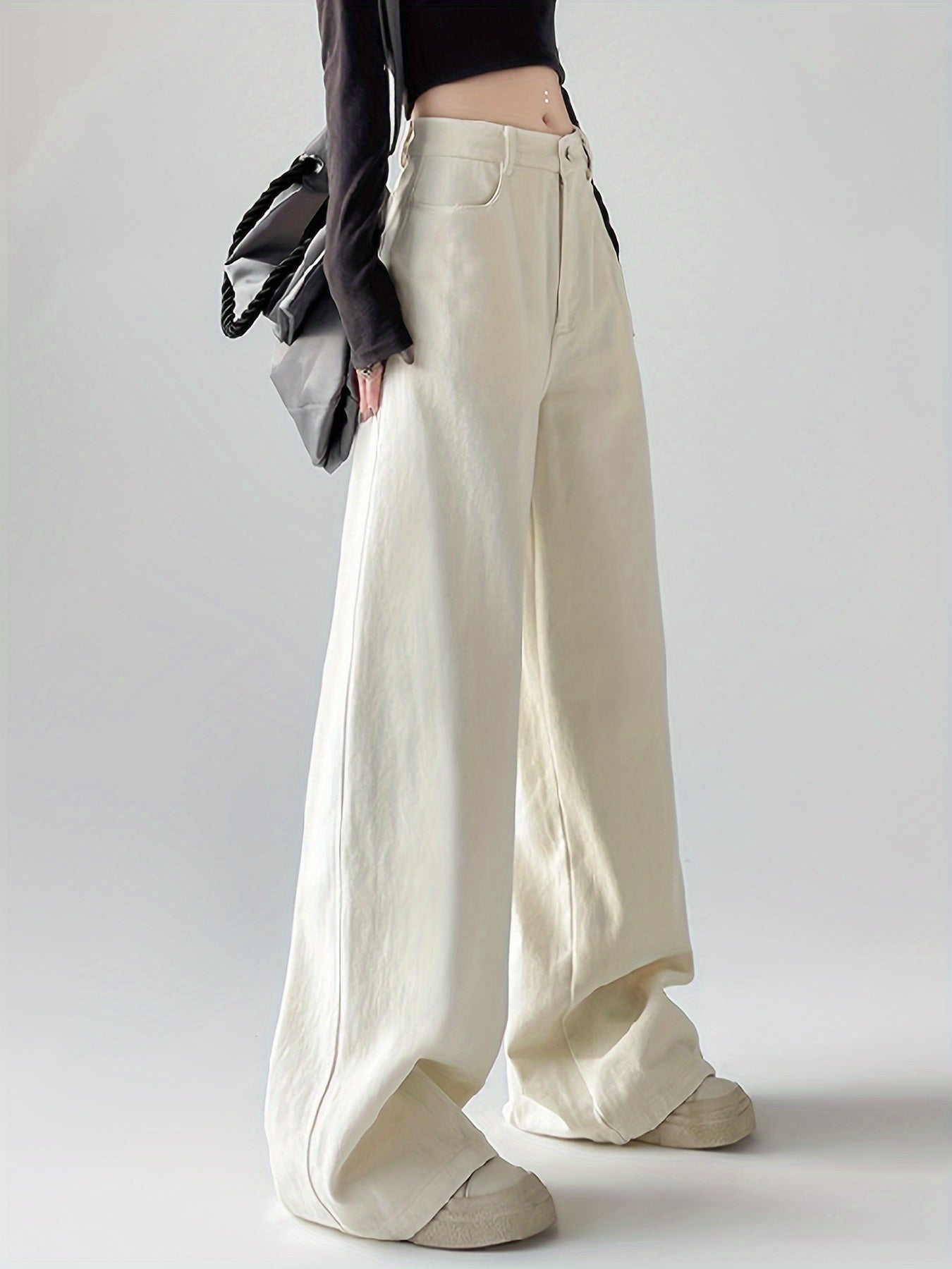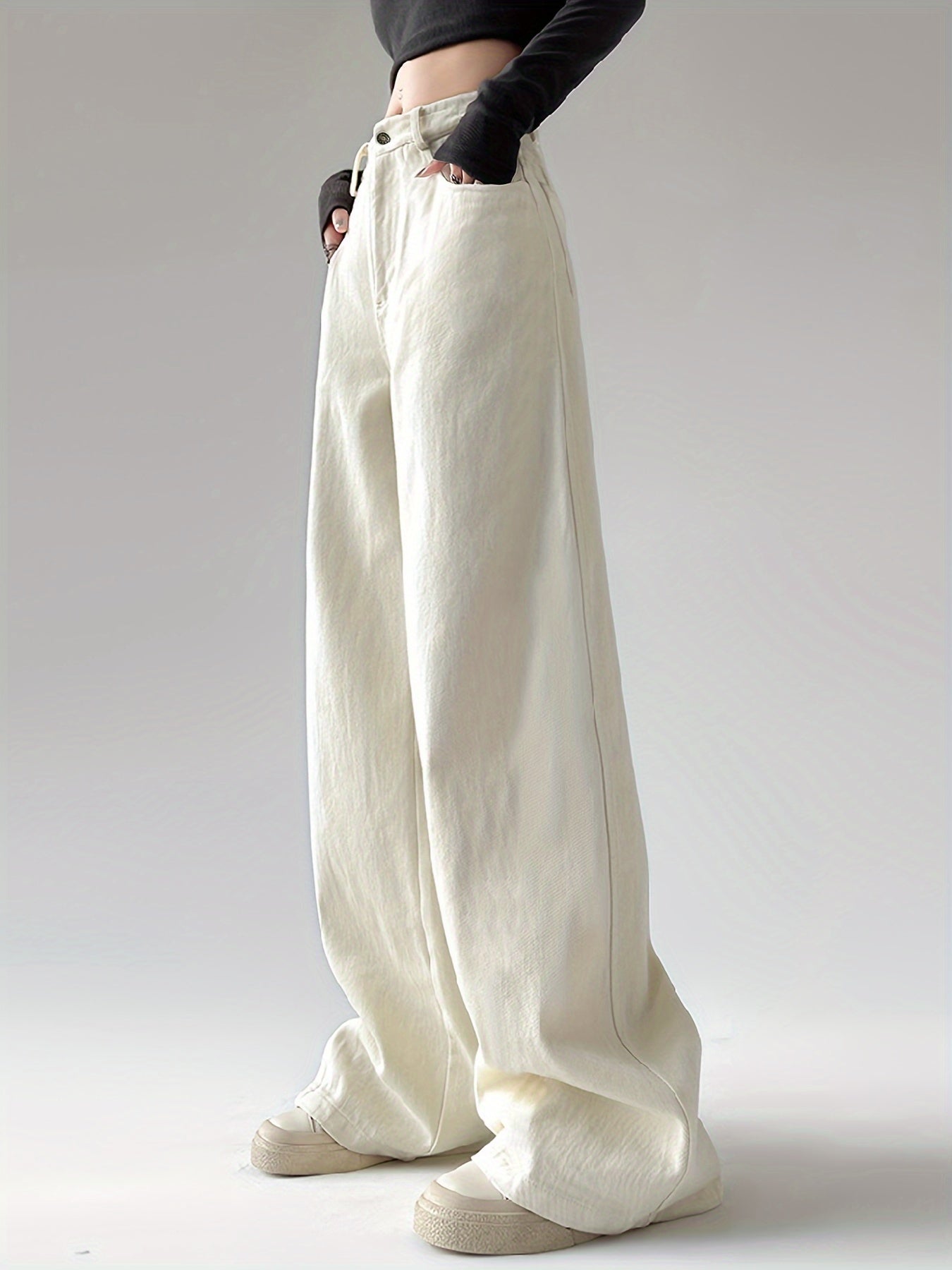 Women's Straight Leg Jeans with Multiple Pockets Denim Long Washed Non-Stretch