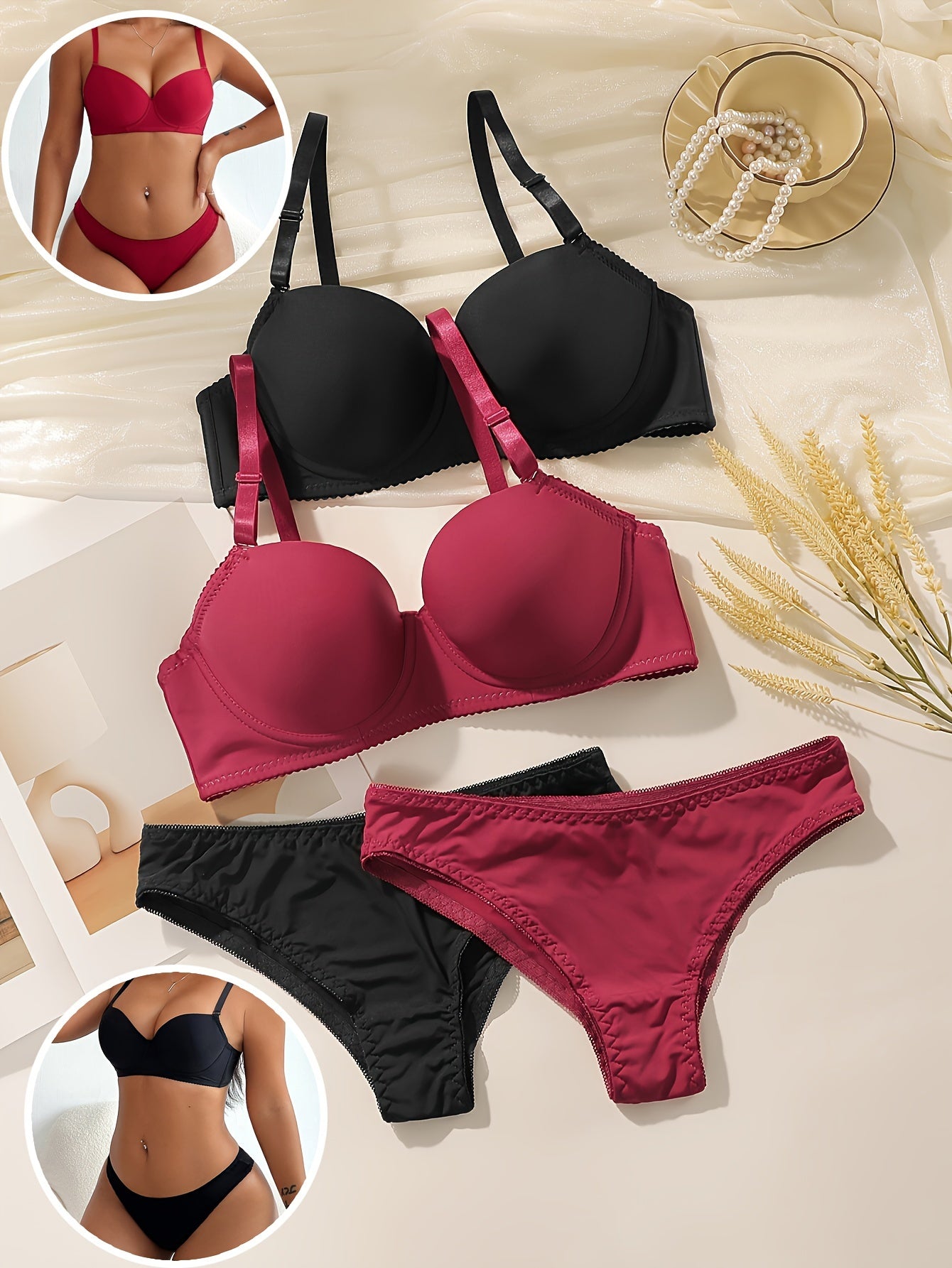 Women’s Strapless Push-Up Lingerie Set 2 Pieces Underwire Support Nylon Elastane