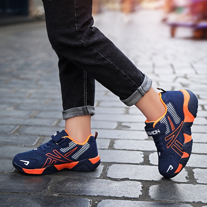 Kids' Striped Casual Sneakers with Hook-and-Loop Fastener Breathable Non-Slip All-Season