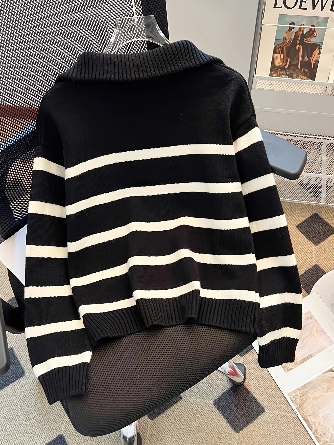 Striped Polyester Pullover with Lapel Collar for Casual Wear