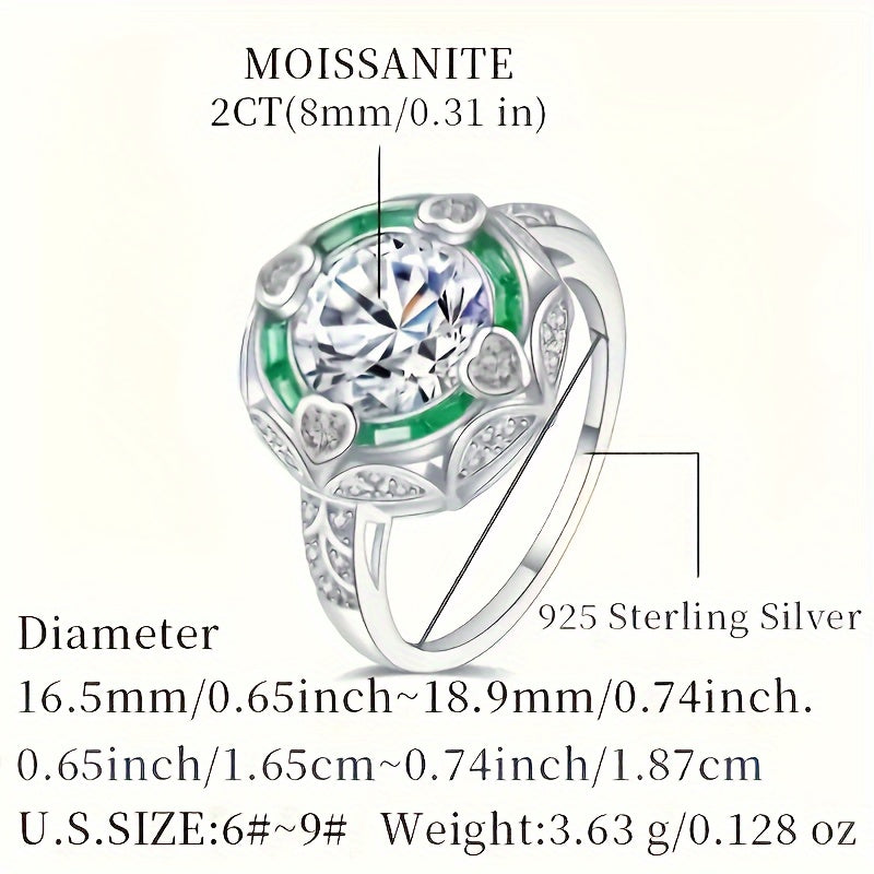 Women’s 2Ct Moissanite Engagement Ring Silver Bohemian Court Style Green Accents
