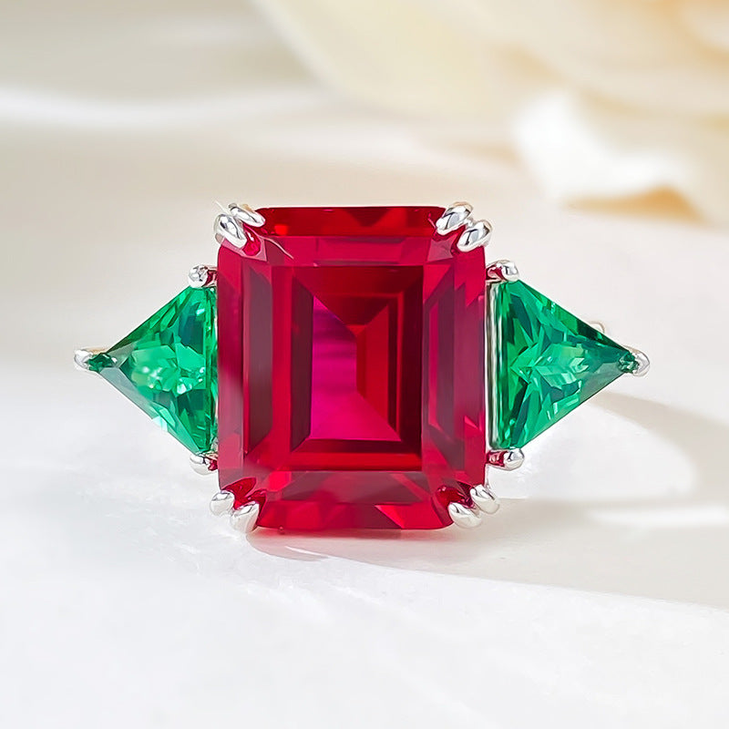 Sterling Silver Ring with Green Gemstones and Synthetic Stones for Women