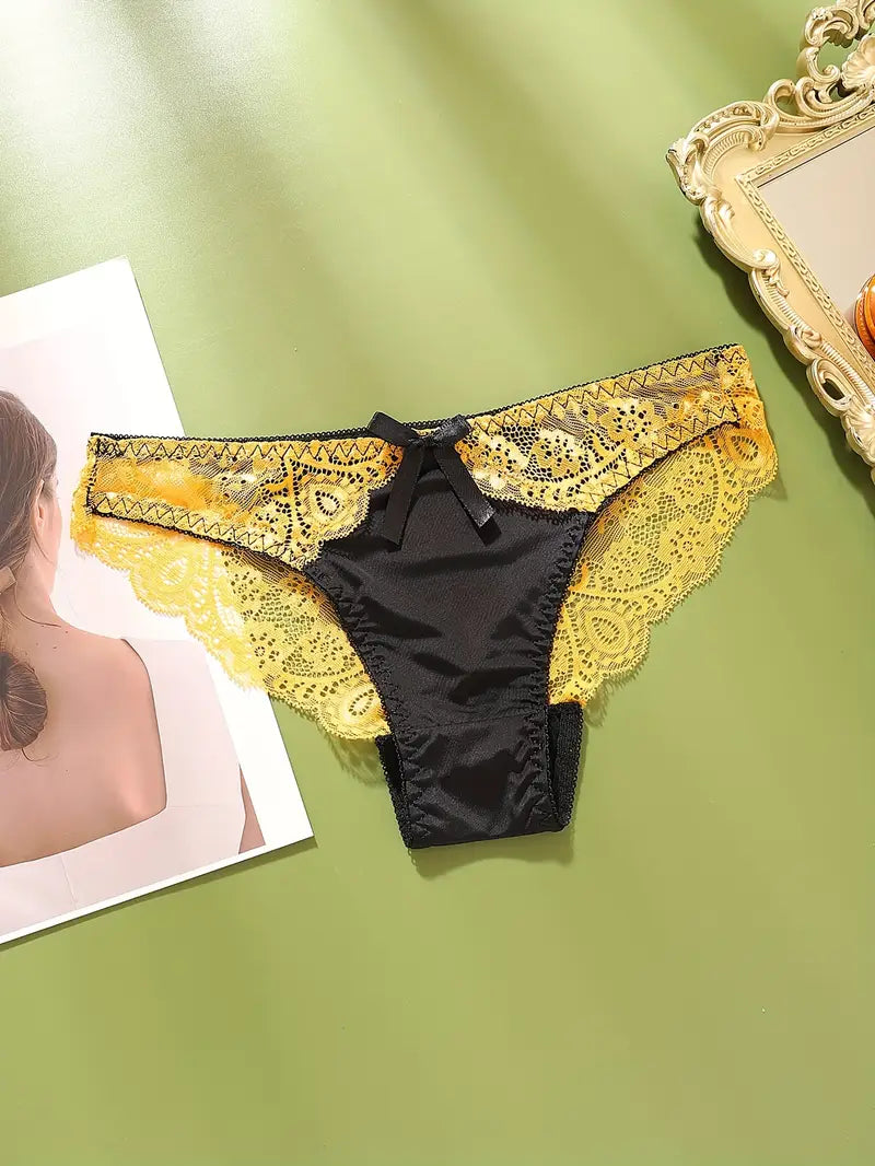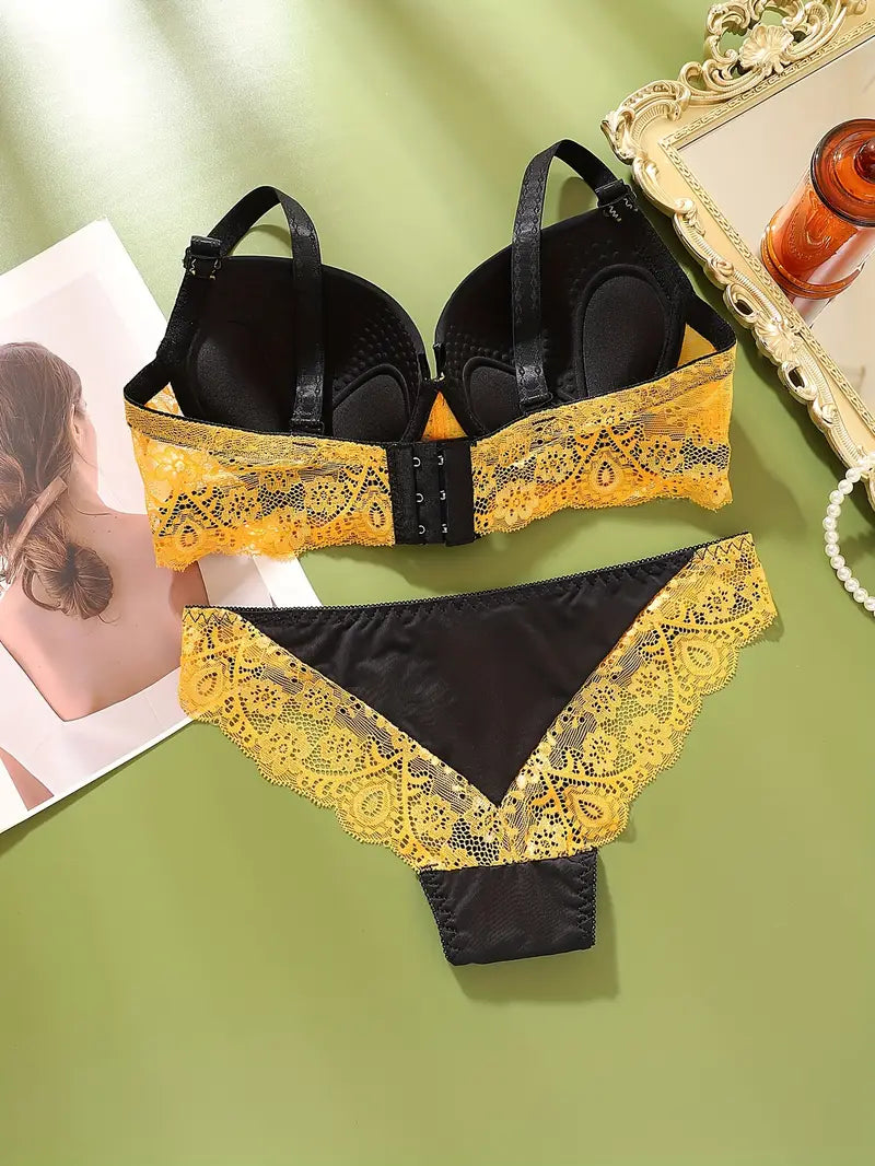 Women's Lace Lingerie Set with Push-Up Bra and Low-Rise Briefs in Breathable Nylon