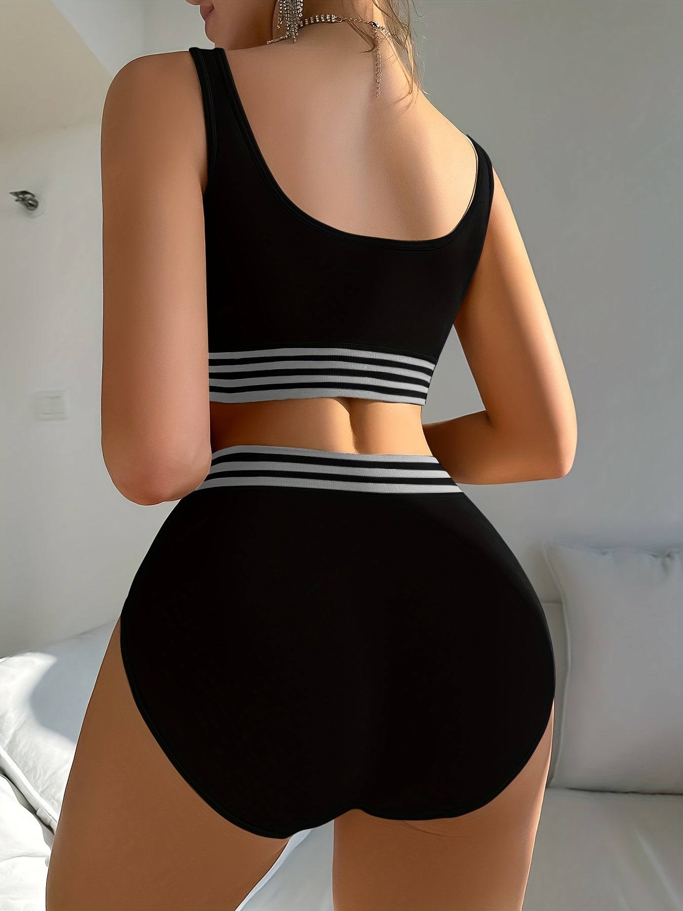 Seamless Women's Lingerie Set with Tank Bra and Mid-Rise Panties Solid Color