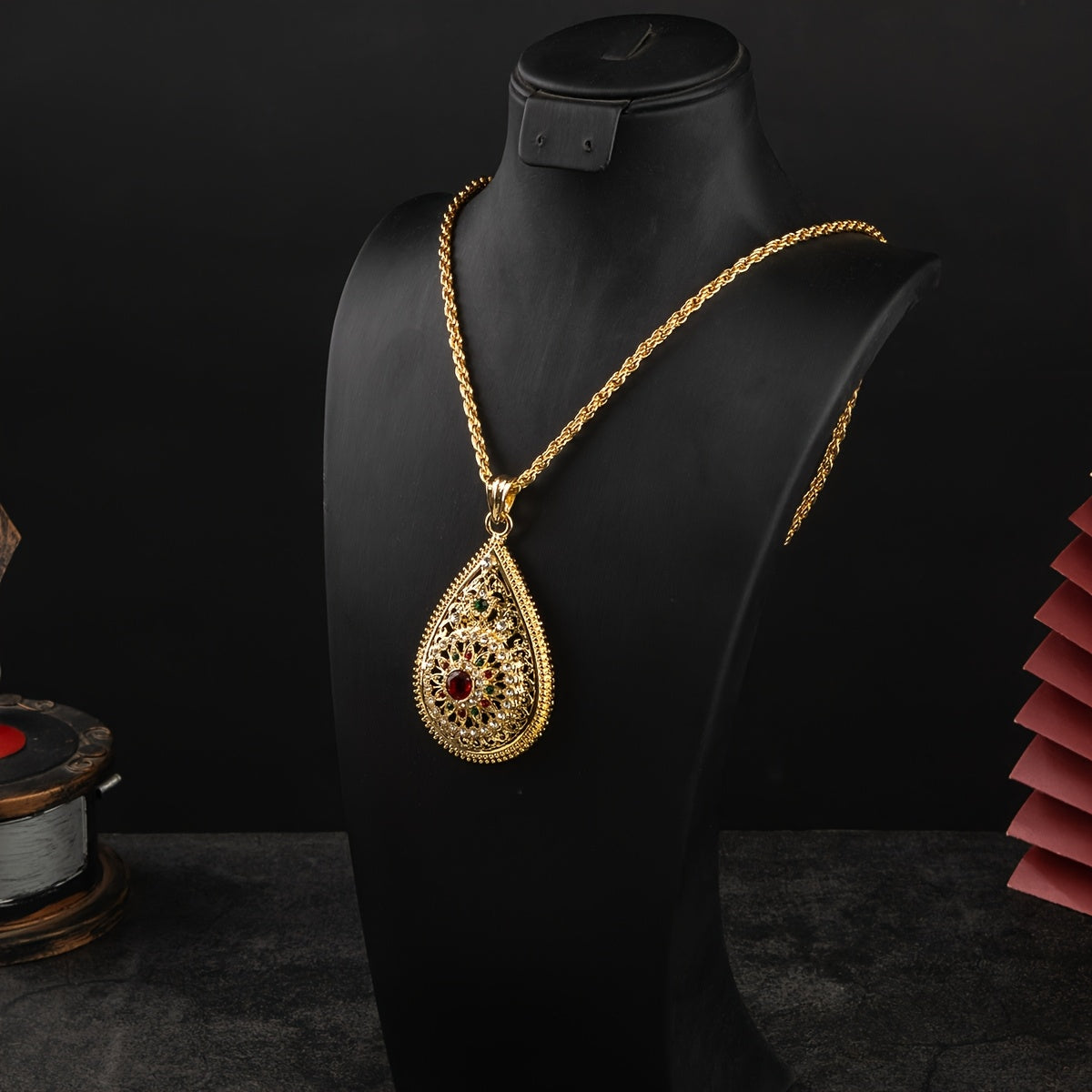 Antique Moroccan-Inspired Gold-Plated Pendant Necklace Hollow Carved Jewelry for Weddings and Events