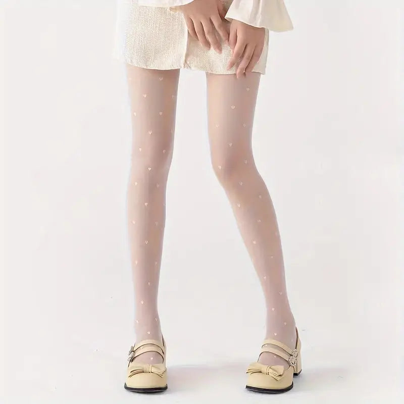 Women’s Black Heart Pattern Sheer Tights High Waist Nylon Spandex Stretch