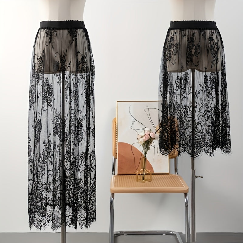 Black Lace Skirt for Women with Stretchy Waistband Stylish Fashion for All Seasons