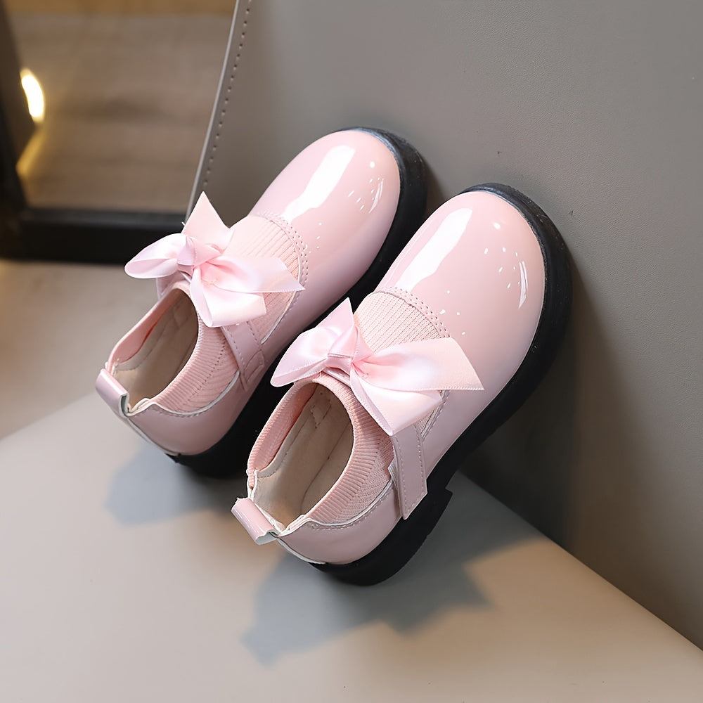 Girls Loafers with Bowknot, Lightweight PU Upper, Rubber Sole for Spring and Fall