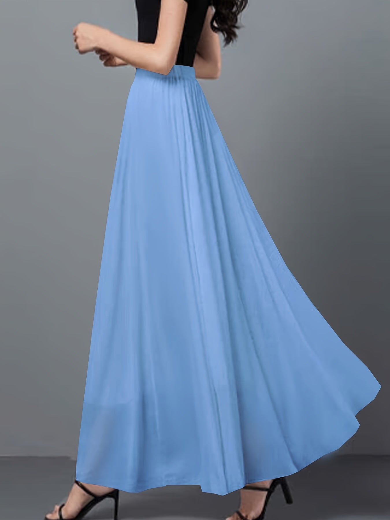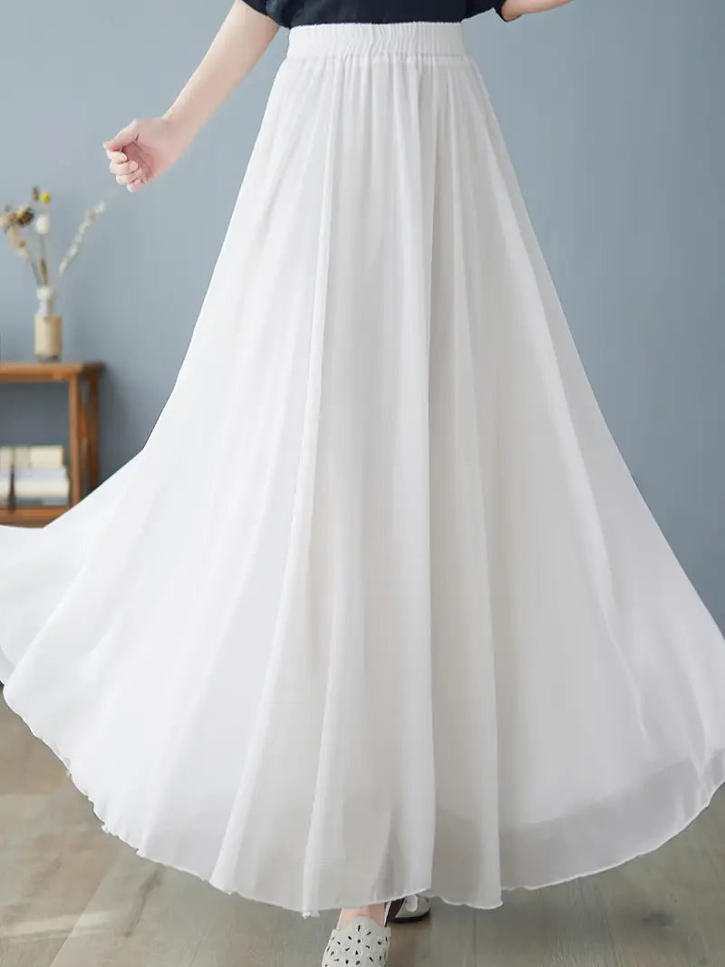Women's High-Waist Chiffon Maxi Skirt with Ruffled Hem and Slimming A-Line Silhouette