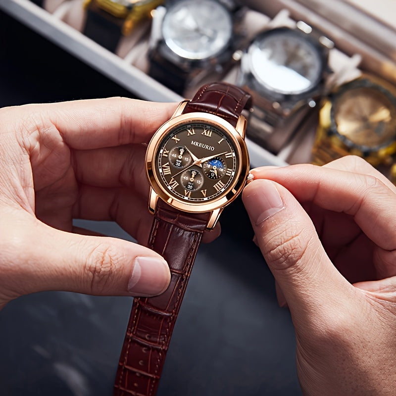 Men's Sports Watch with Leather Strap for Business and Outdoor Activities