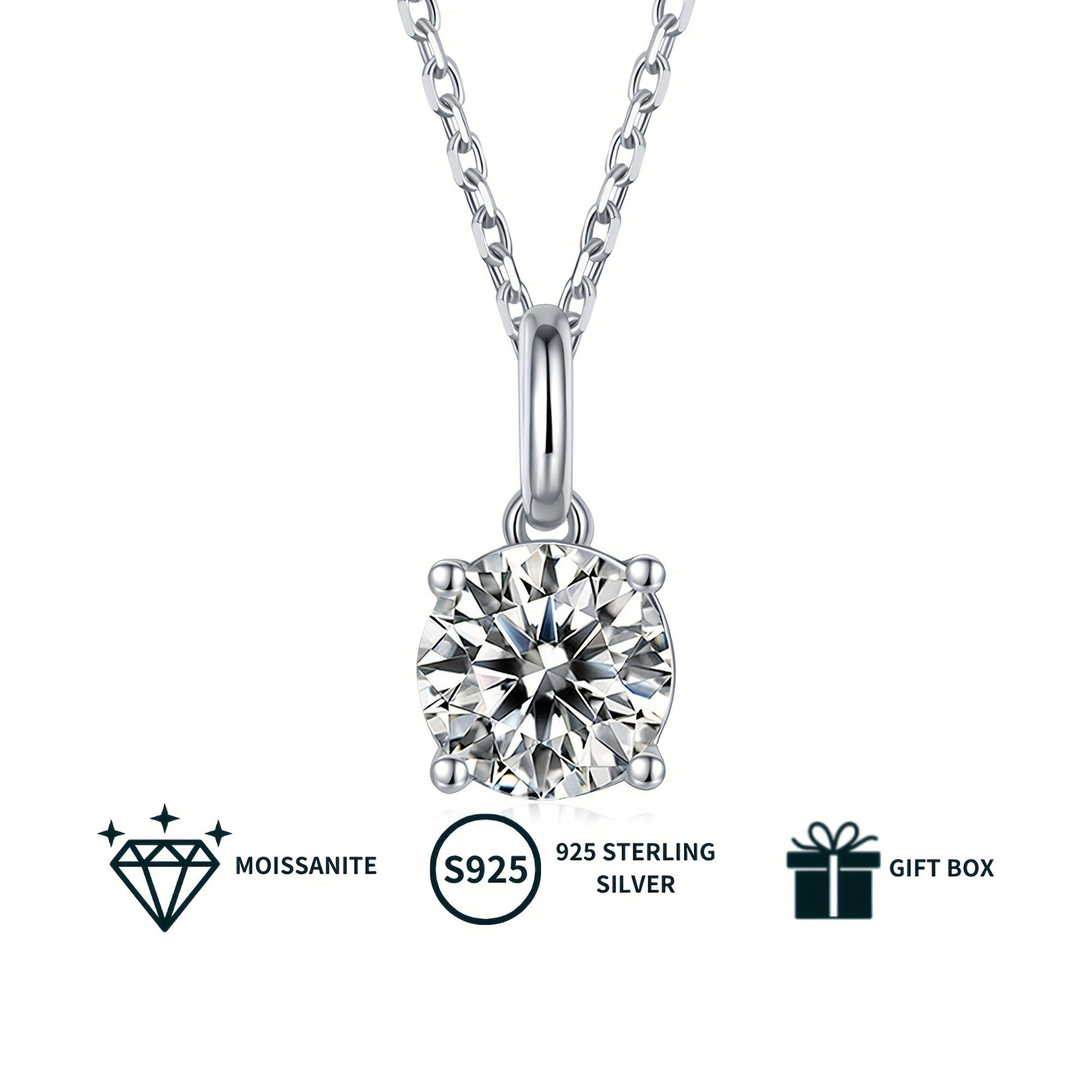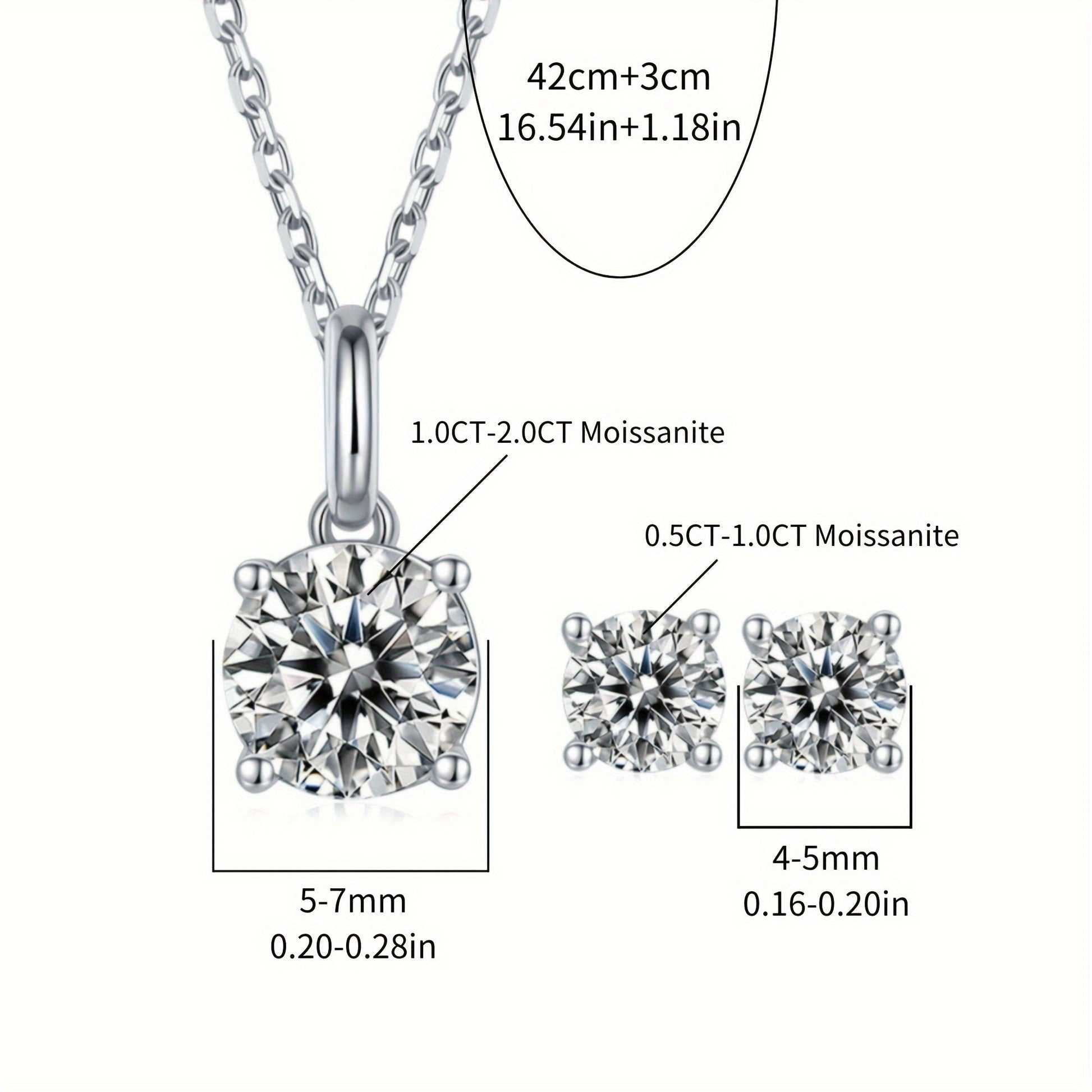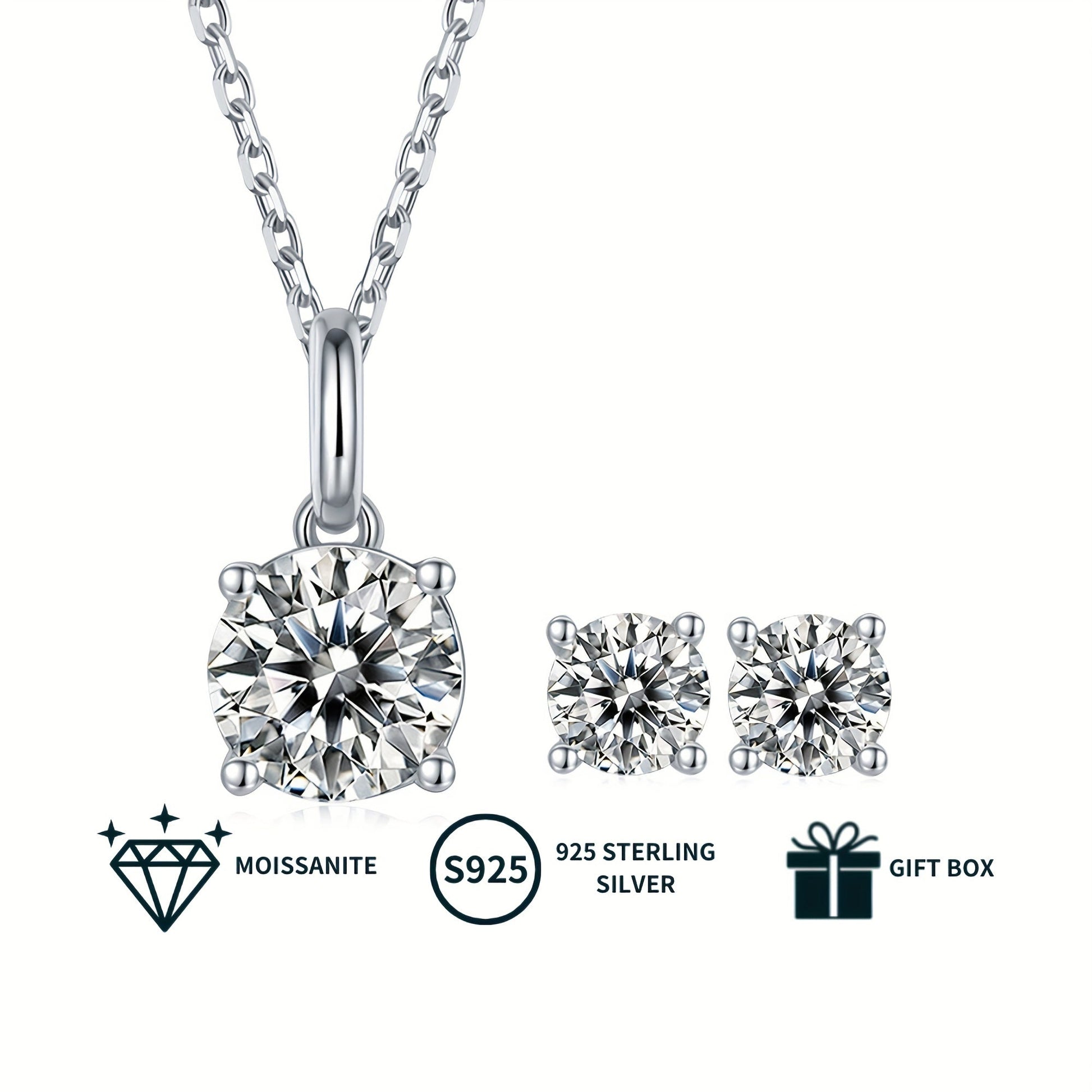 Moissanite Jewelry Set for Women 1.0CT Pendant Necklace and Stud Earrings White Gold Plated Silver Engagement Wedding Gift Box