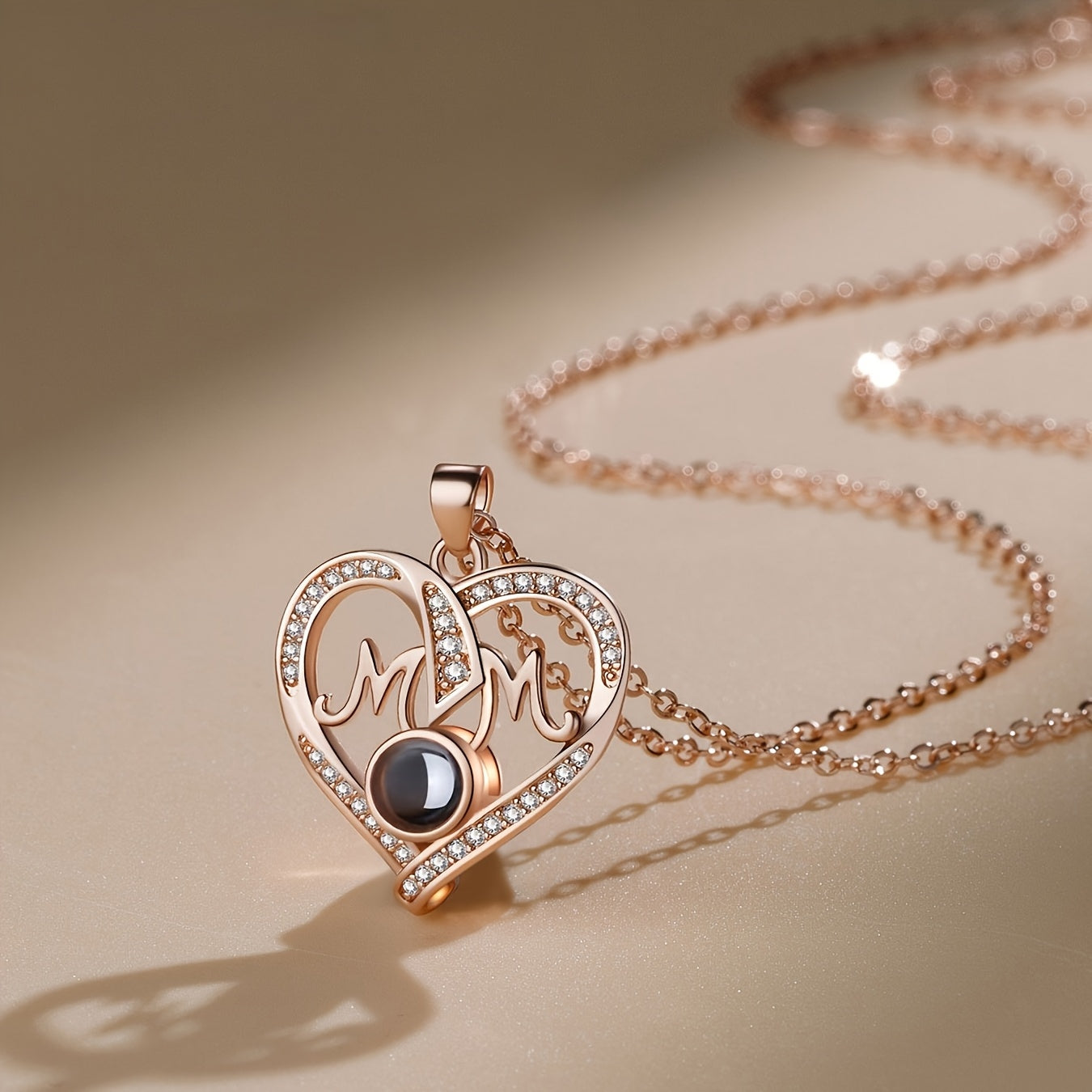 Red Apple Gift Box with Heart Pendant Necklace Rose Gold Plated Synthetic Zirconia Jewelry for Women