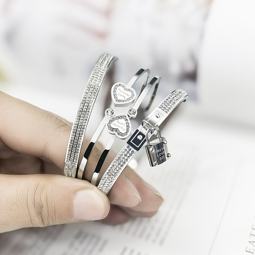 Set of 3 Gold-Plated Stainless Steel Bracelets for Women with Heart Pendant