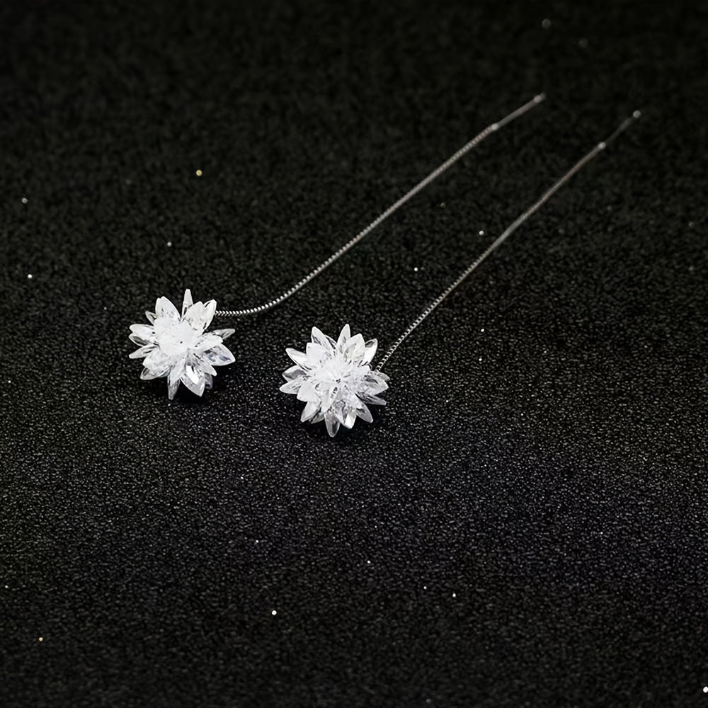 Silver-Plated Copper Floral Drop Earrings for Women Sensitive Skin Suitable for Daily or Special Occasions