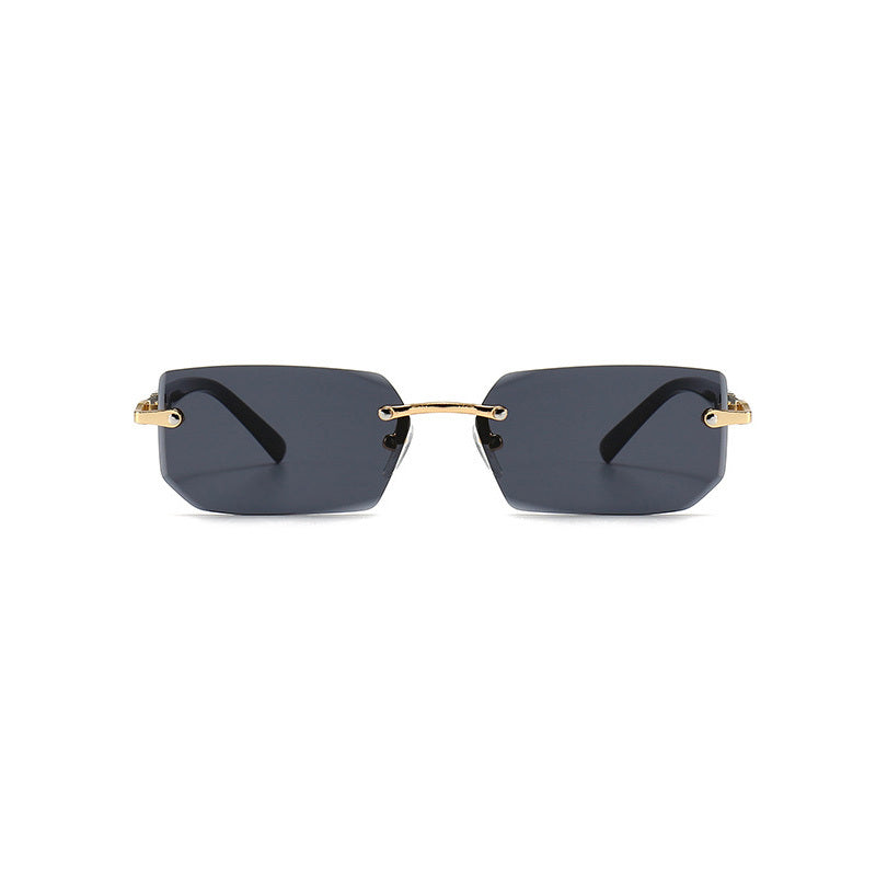 Square Rimless Vintage Sunglasses with Gold Frame and Black Lenses for Hip Hop Style