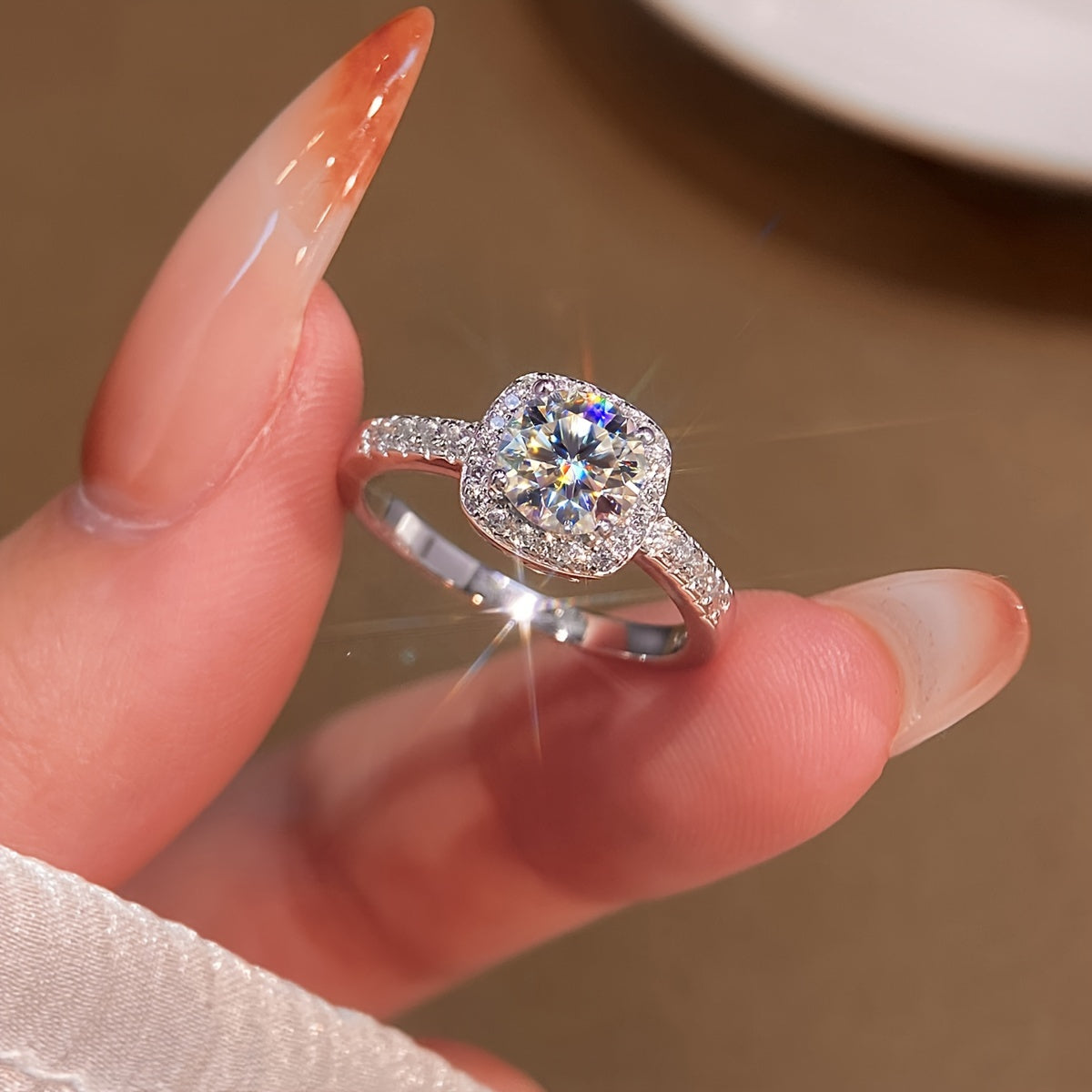 Square Moissanite Ring for Women 1 Carat Sterling Silver Wedding Anniversary Gift