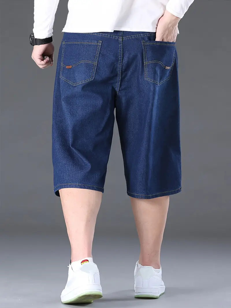 Plus Size Men's Denim Shorts Casual Blue Cotton Stretch Summer