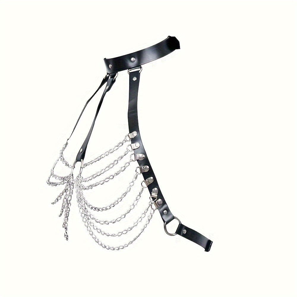 Women's Gothic Chain Belt with Tassels and Hollow PU Leather Chest Cage Bra
