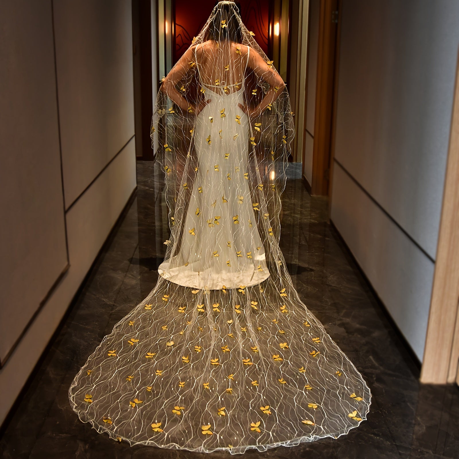 Wedding Veil with Butterfly Embroidery Cathedral Length Nylon Single Tier Bridal Accessory
