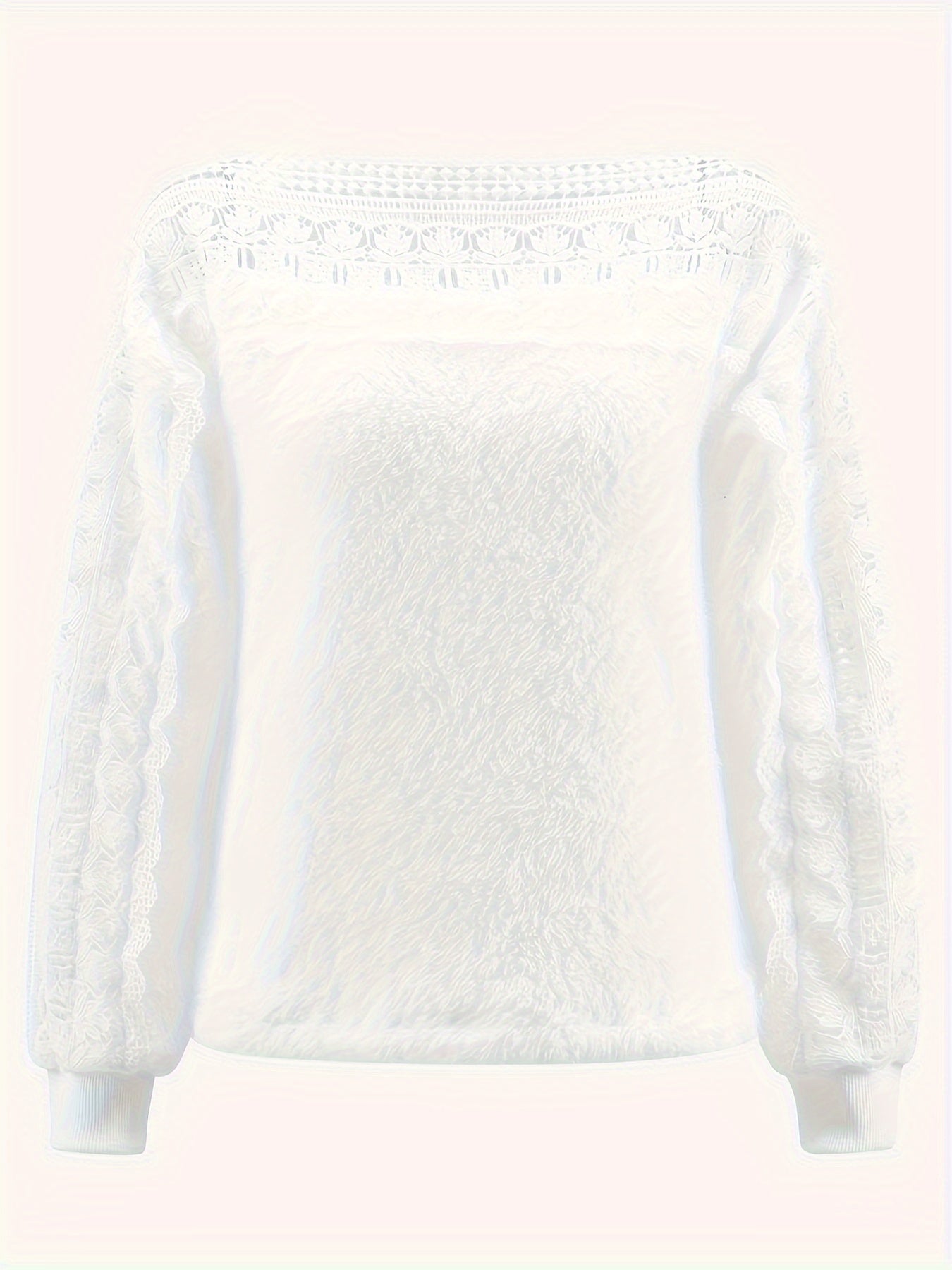 Women's Sleepwear Top Long Sleeve Lace Trim Polyester Solid Crew Neck Spring Summer Fall