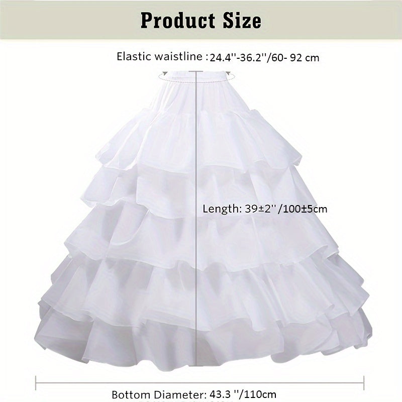 White Petticoat for Weddings and Parties with 4 Hoops and 5 Ruffles