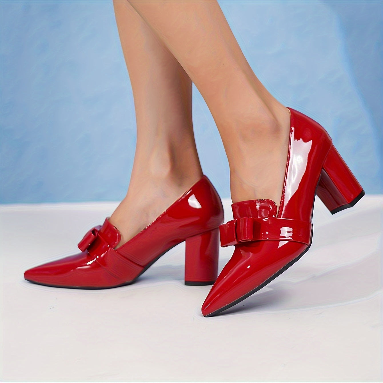 Women's Pointed Toe Slip-On Pumps with Bowknot Chunky Heel All-Season