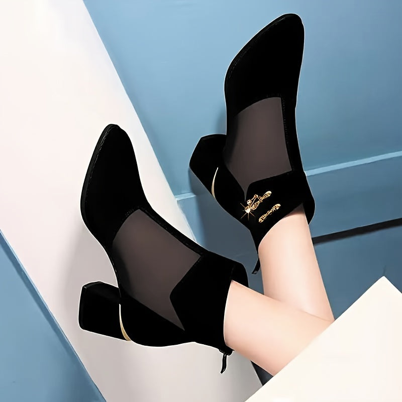 Women's Mesh High Heels with Crystal Accents and Chunky Block Heel
