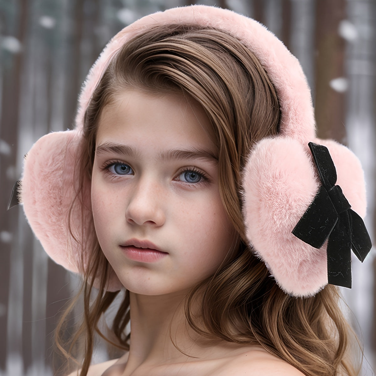 Women's Plush Heart-Shaped Earmuffs with Black Bow Warm Cozy Winter Accessory