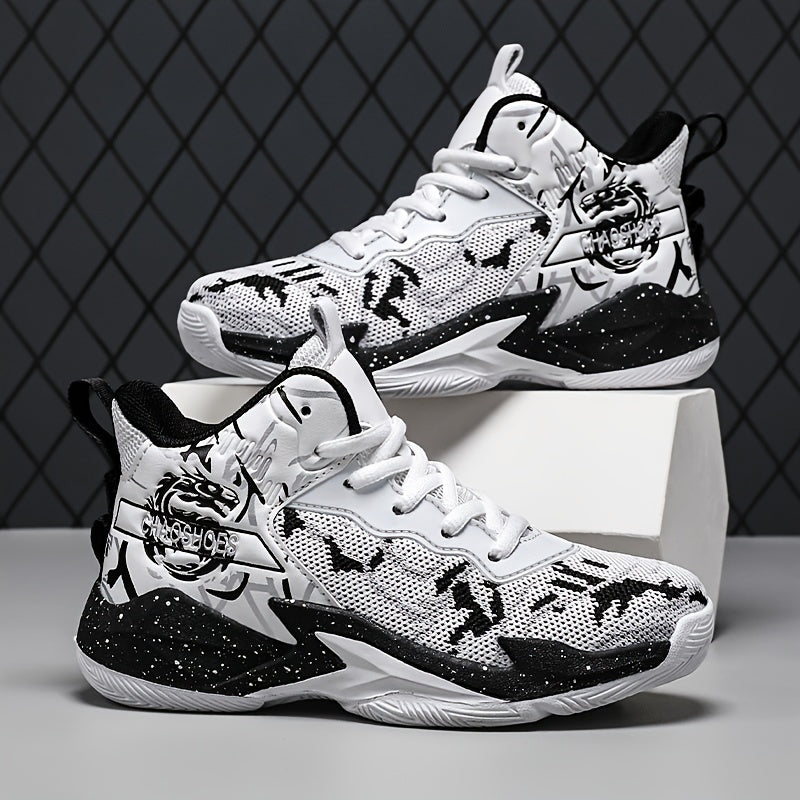 Boys Woven Basketball Shoes Mid Top Lace Up Non Slip All Season Sneakers