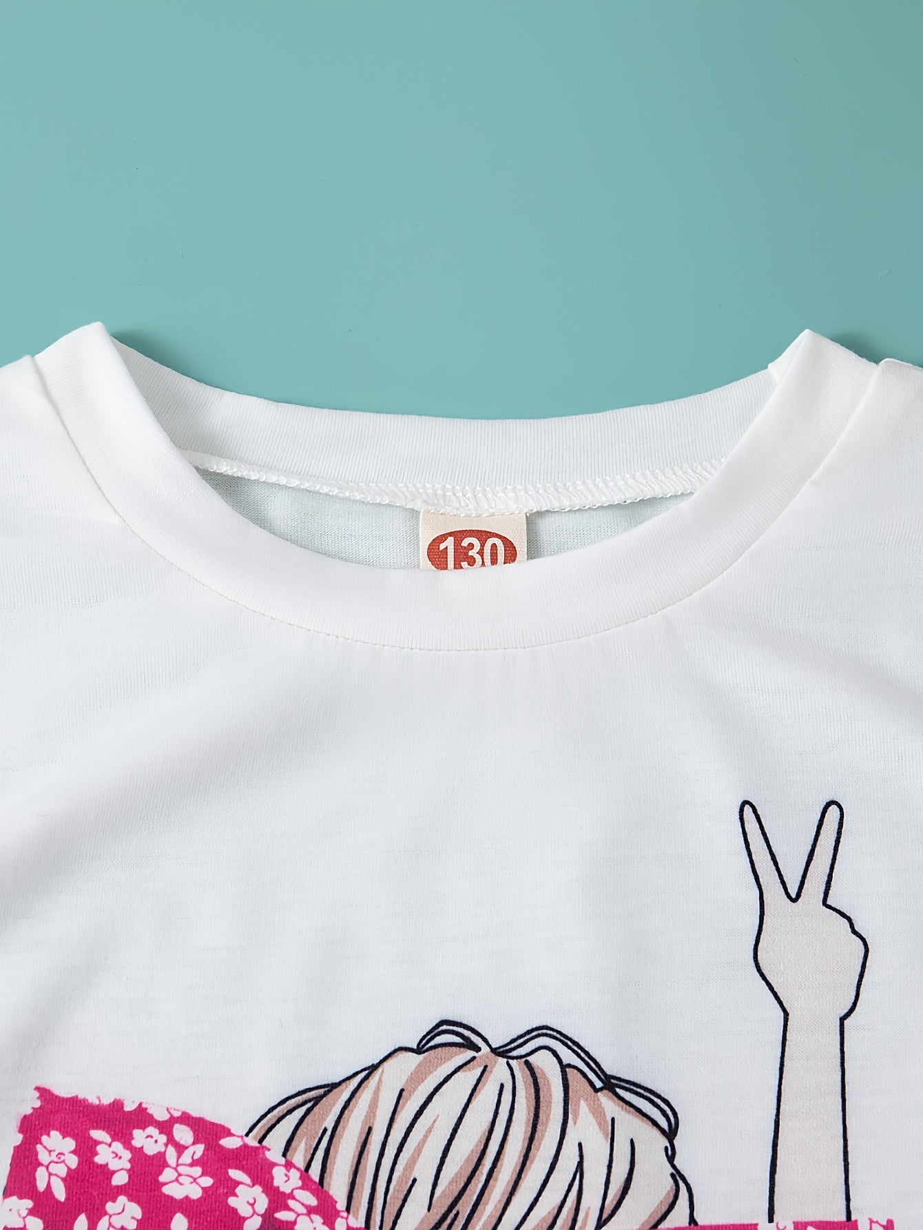 Girls Summer Outfit Set with Floral Shorts and Crew Neck Short Sleeve Top