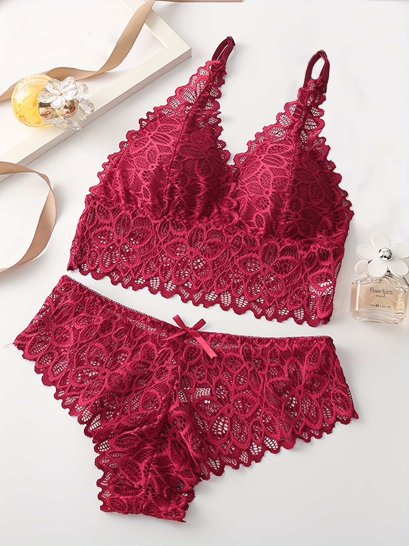 French Lace Vest-Style Underwear Set with Breathable Molded Cups for Women