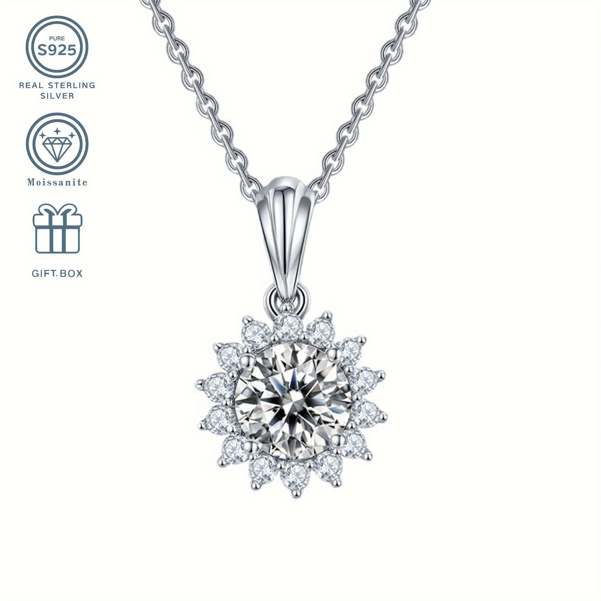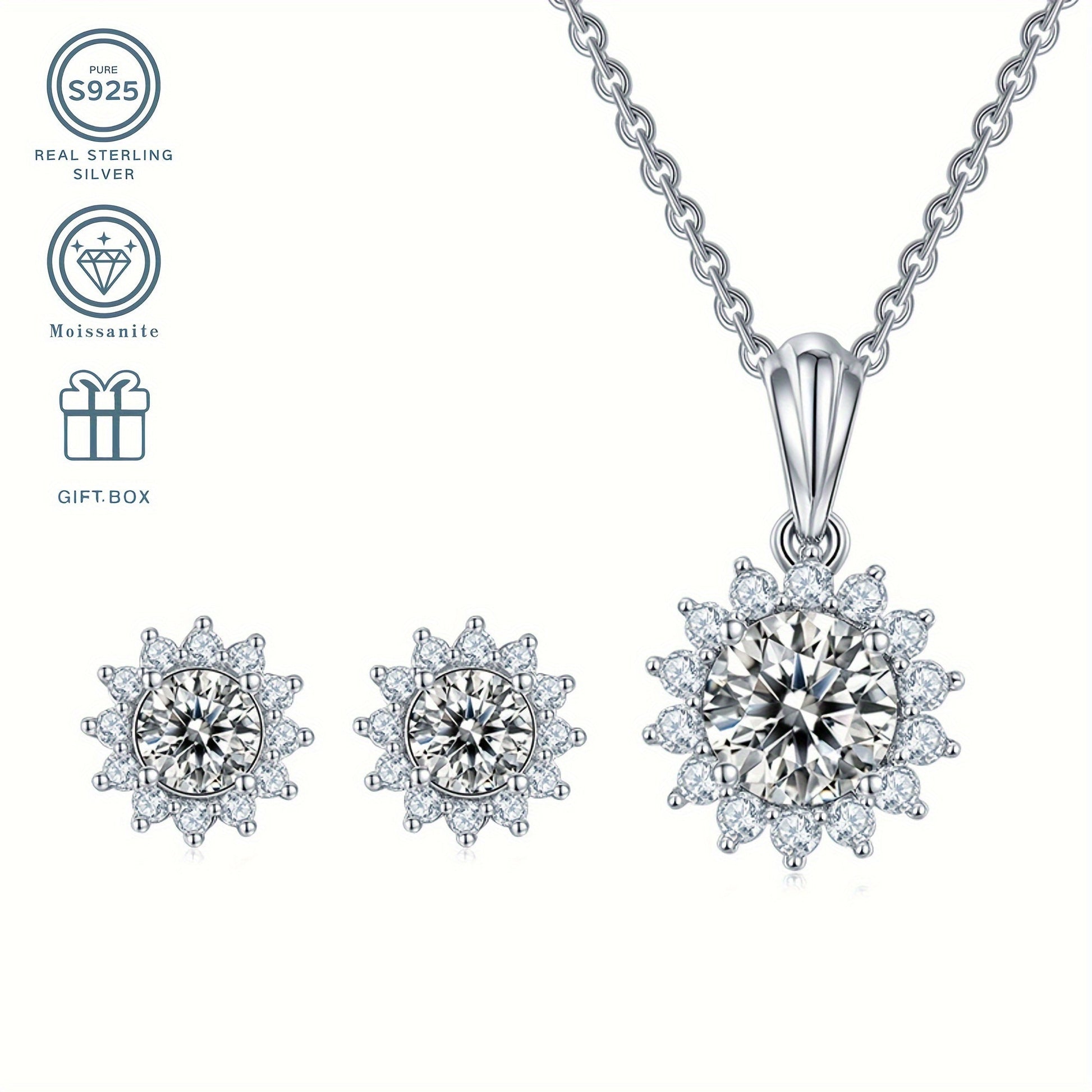 Sunflower Moissanite Jewelry Set in Silver Plating with 1CT Pendant and 0.5CT Earrings for Women