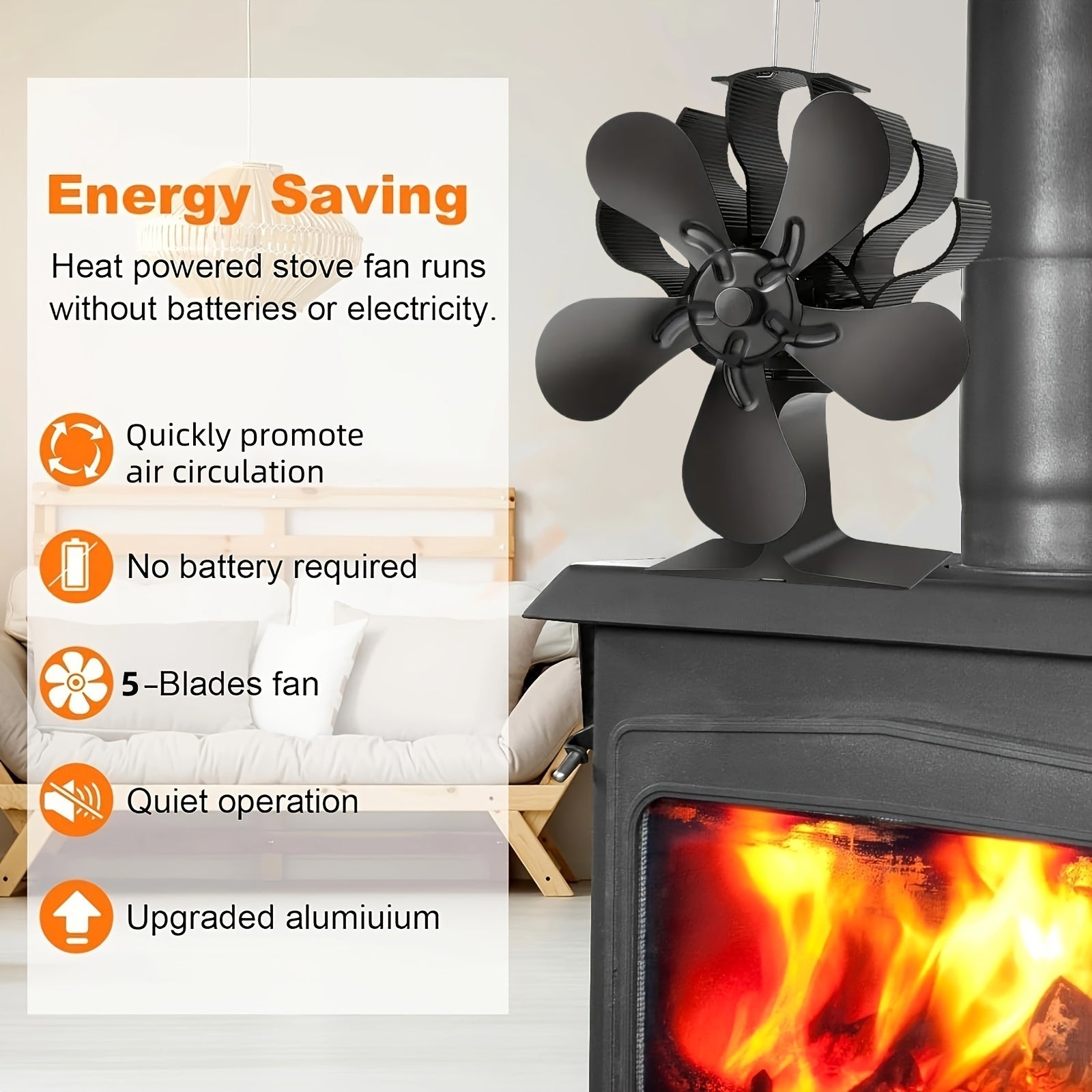 Aluminum Wood Burning Stove Fan with Polished 5-Blade High-Speed Air Circulation