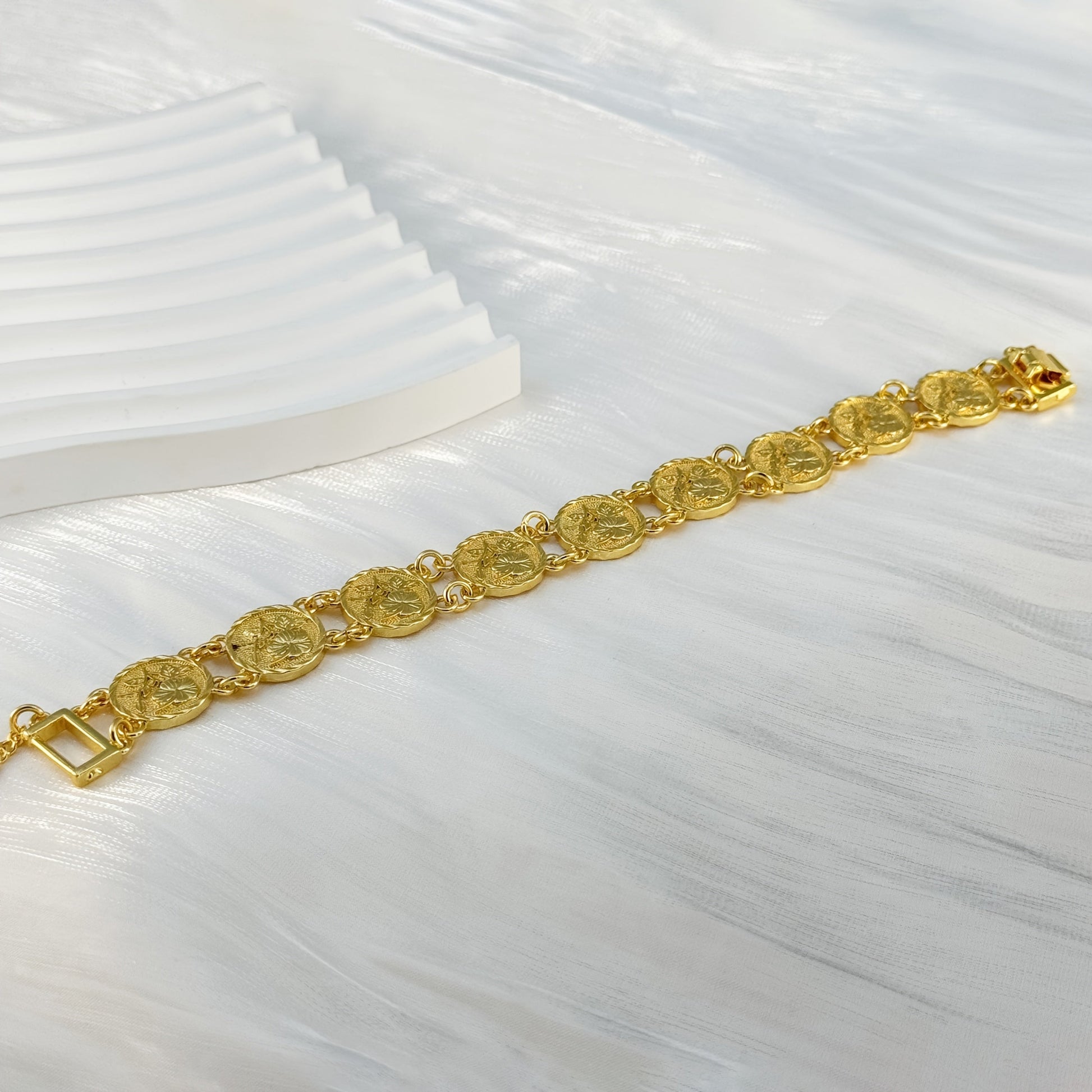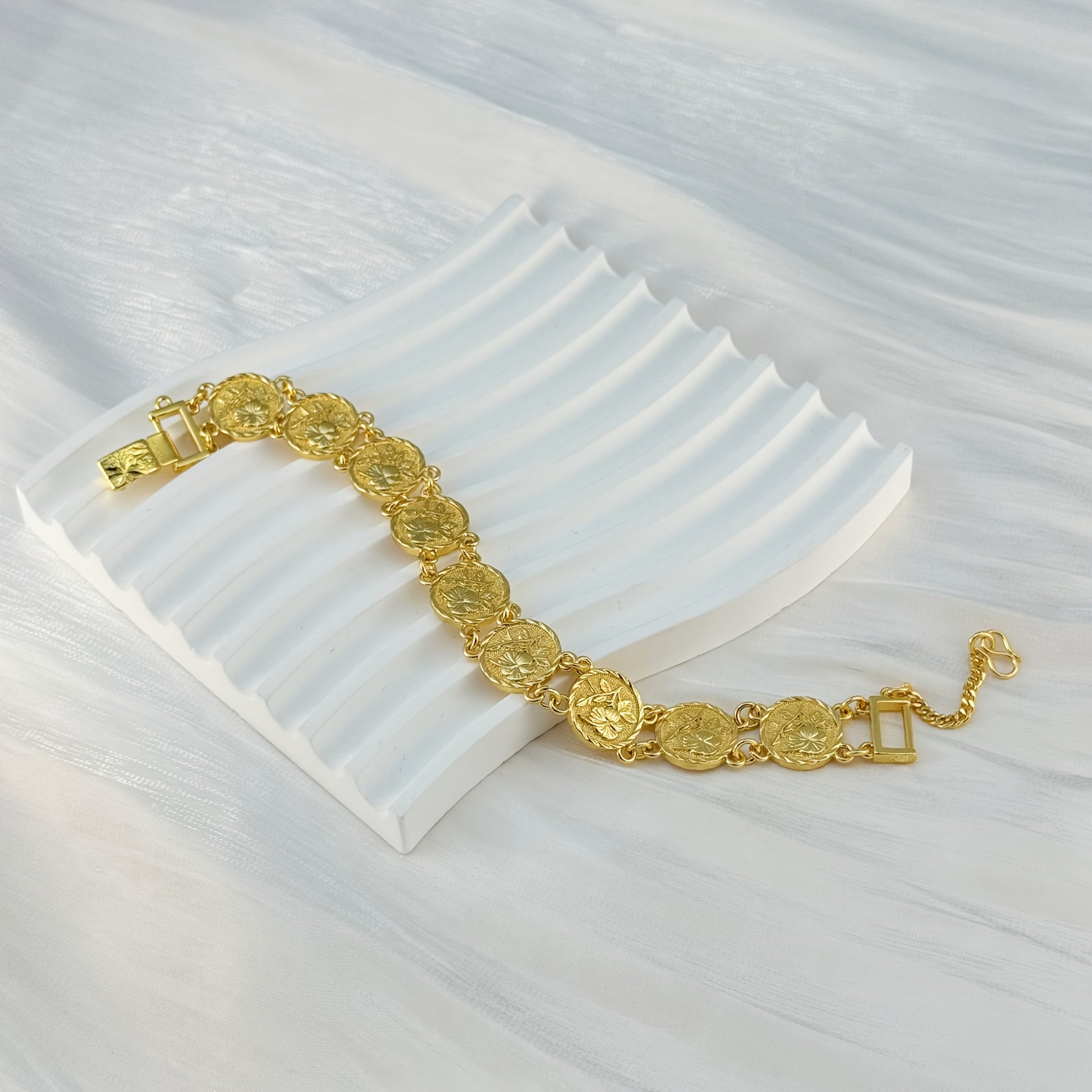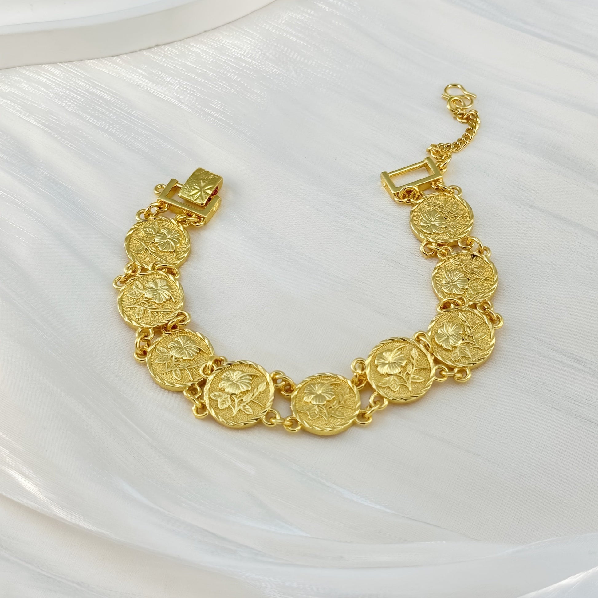 Floral Coin Bracelet for Men and Women Wedding Birthday Party Gift