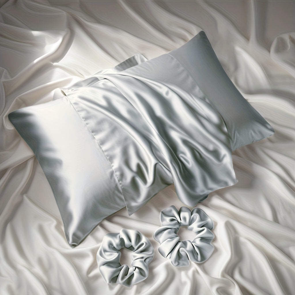Satin Bedding Accessories 3-Piece Set Pillowcase and Headbands for Bedroom Bathroom Hotel