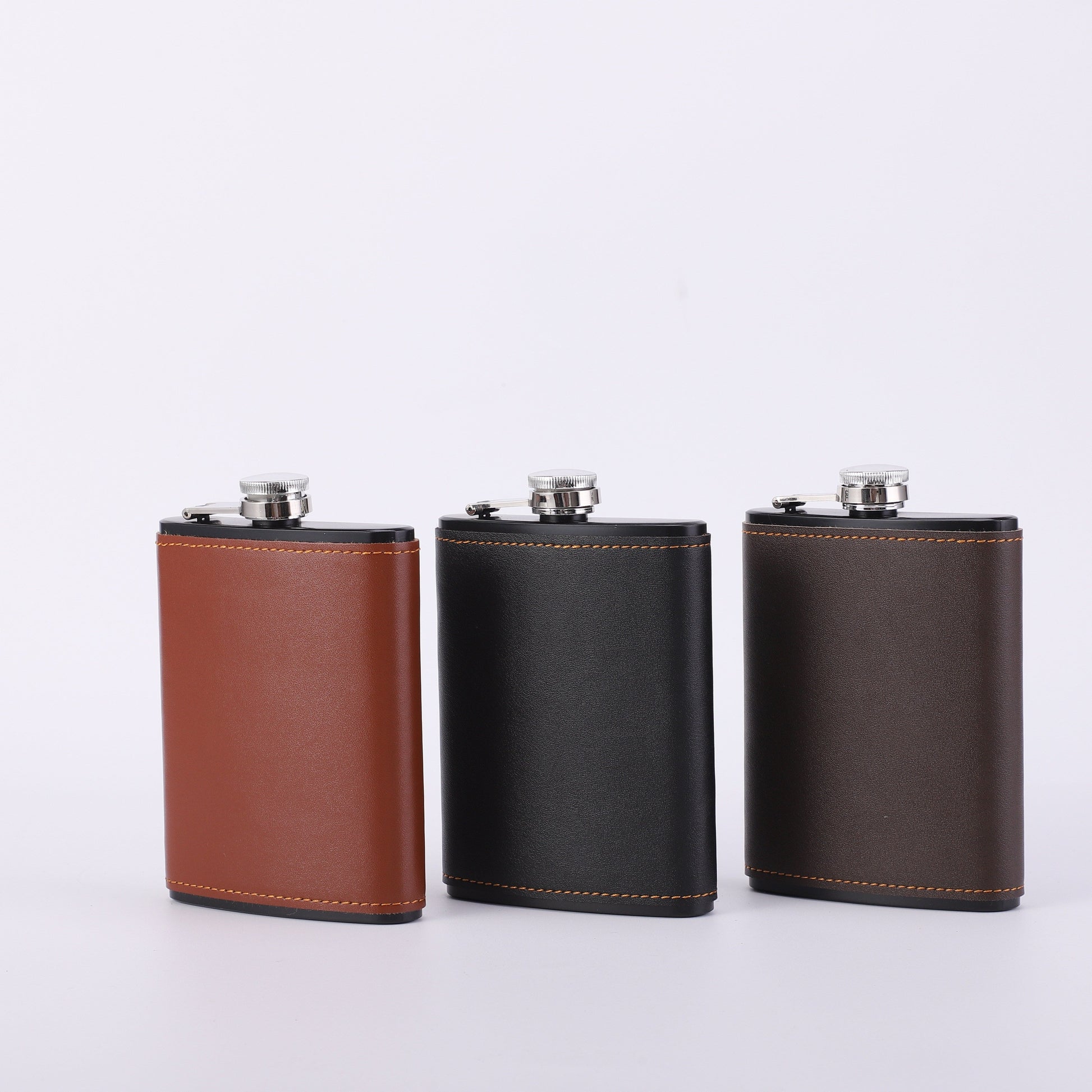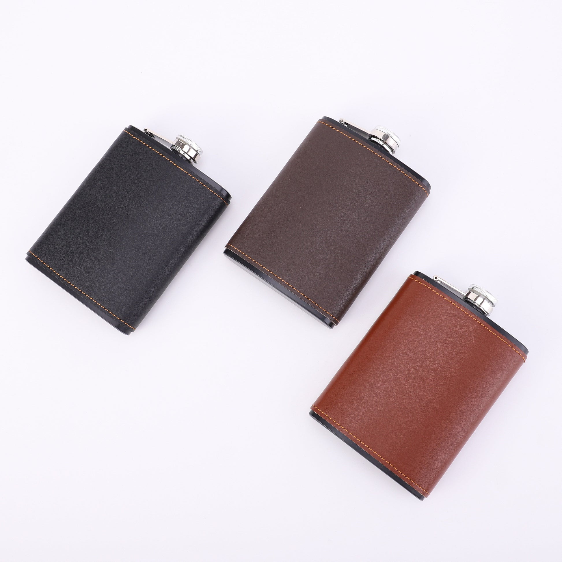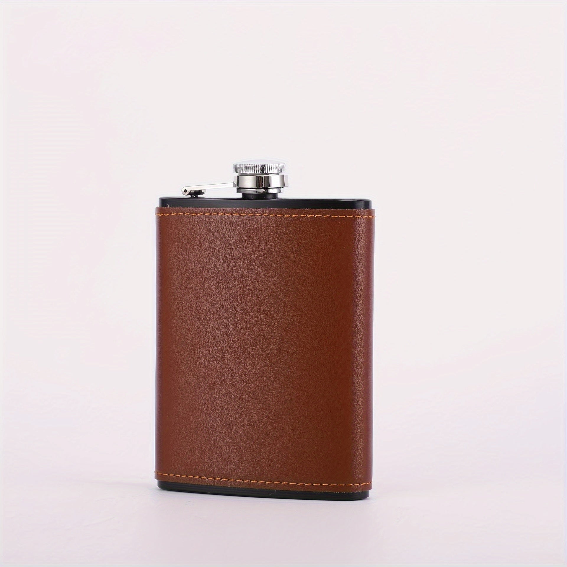 8-Ounce Stainless Steel Hip Flask with Faux Leather Case in Black or Brown