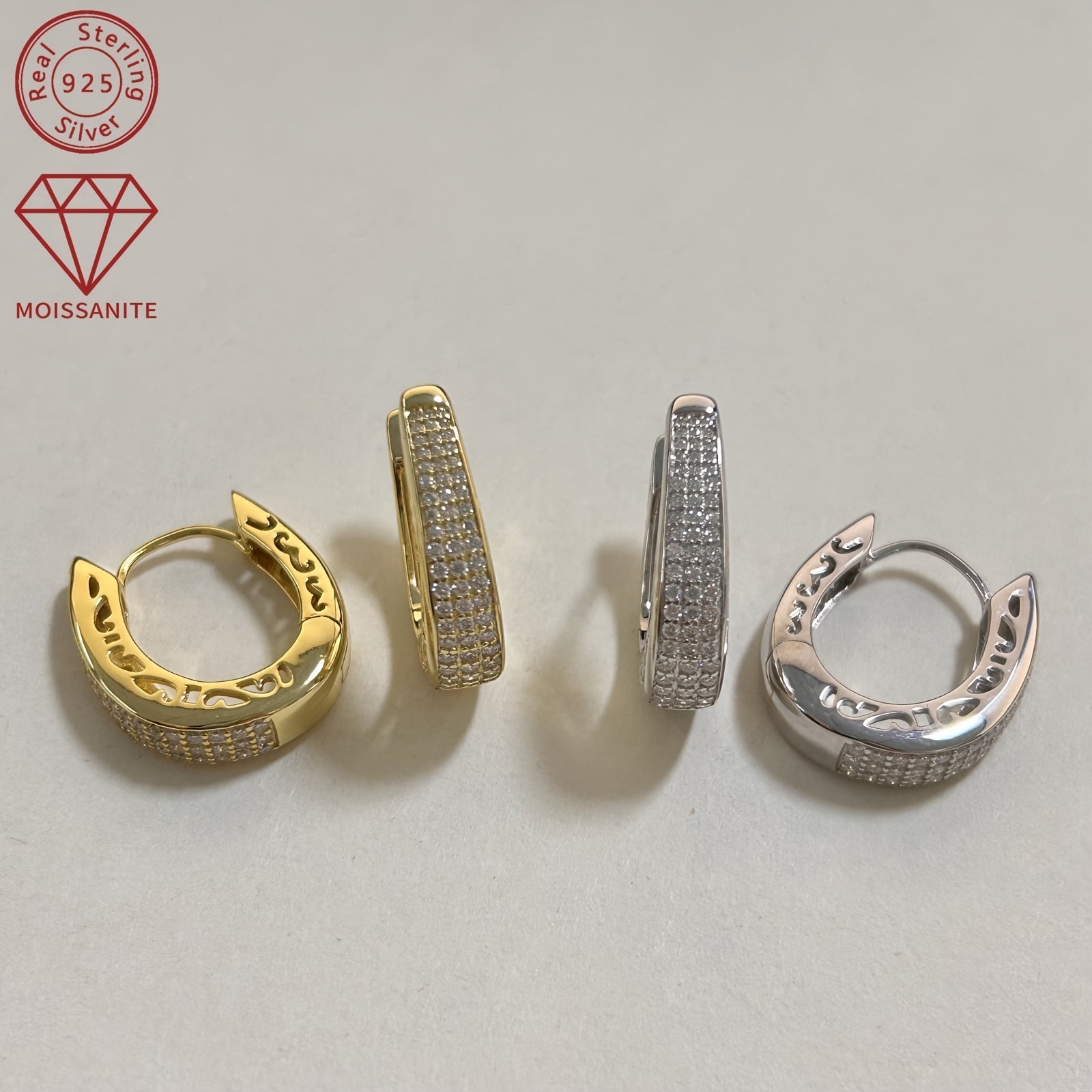 Women's Moissanite Earrings 925 Silver with 0.43ct and Patterned Stones