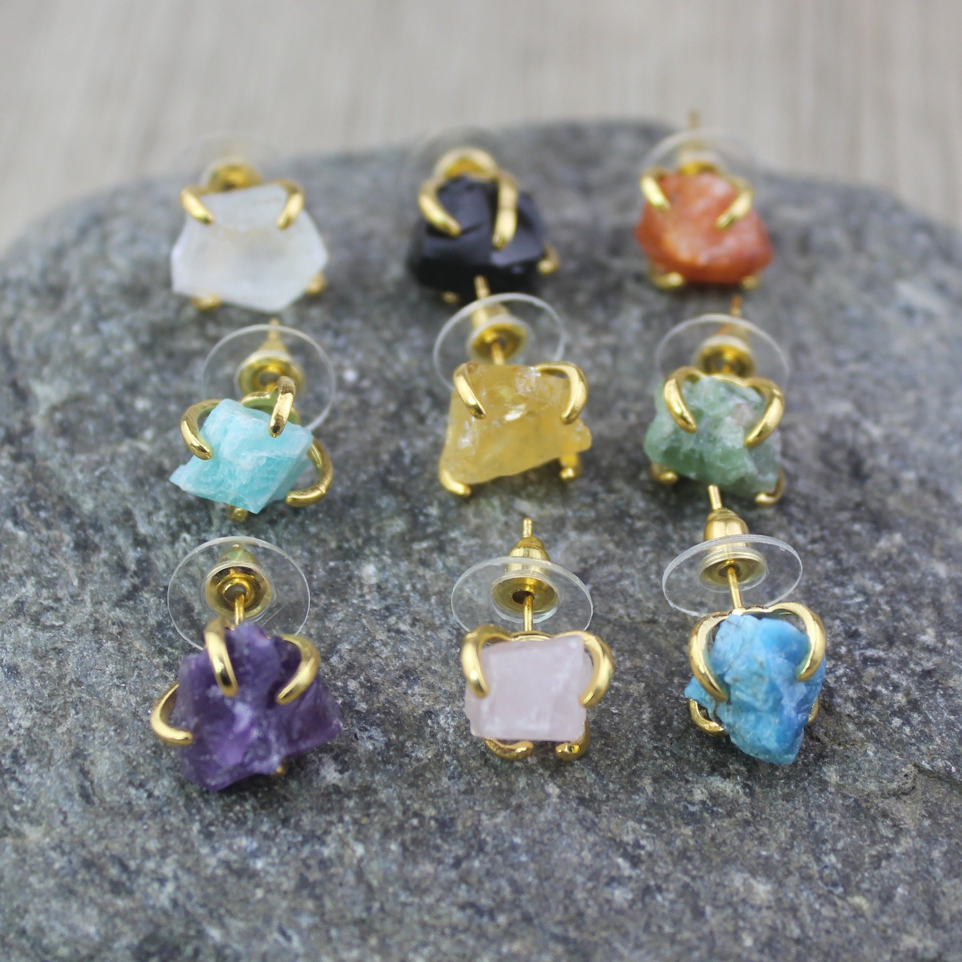 Small Handmade Stud Earrings with Colorful Natural Stones for Women
