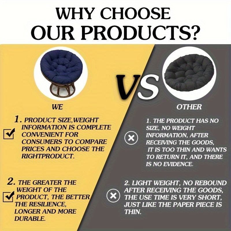 Oversized Round Seat Cushion with Fluffy Fill for Lounge Chairs 44 Inch