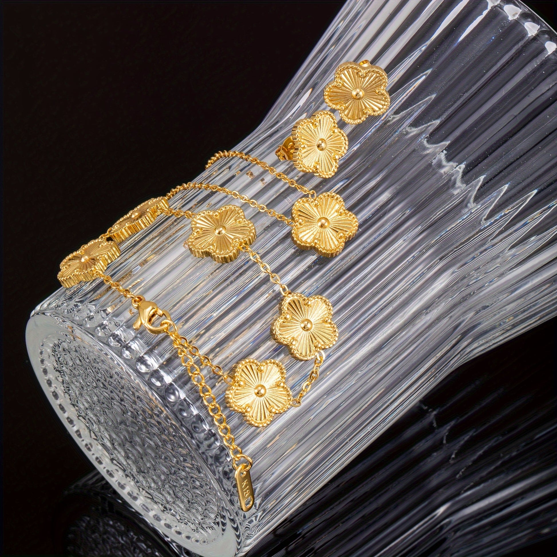 Gold Plated Stainless Steel Jewelry Set with Earrings Necklace and Bracelet for Women