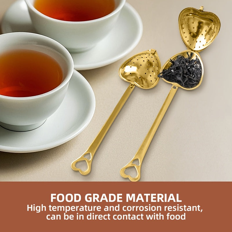 Golden Heart-Shaped Stainless Steel Tea Infuser for Loose Tea Coffee and Spices
