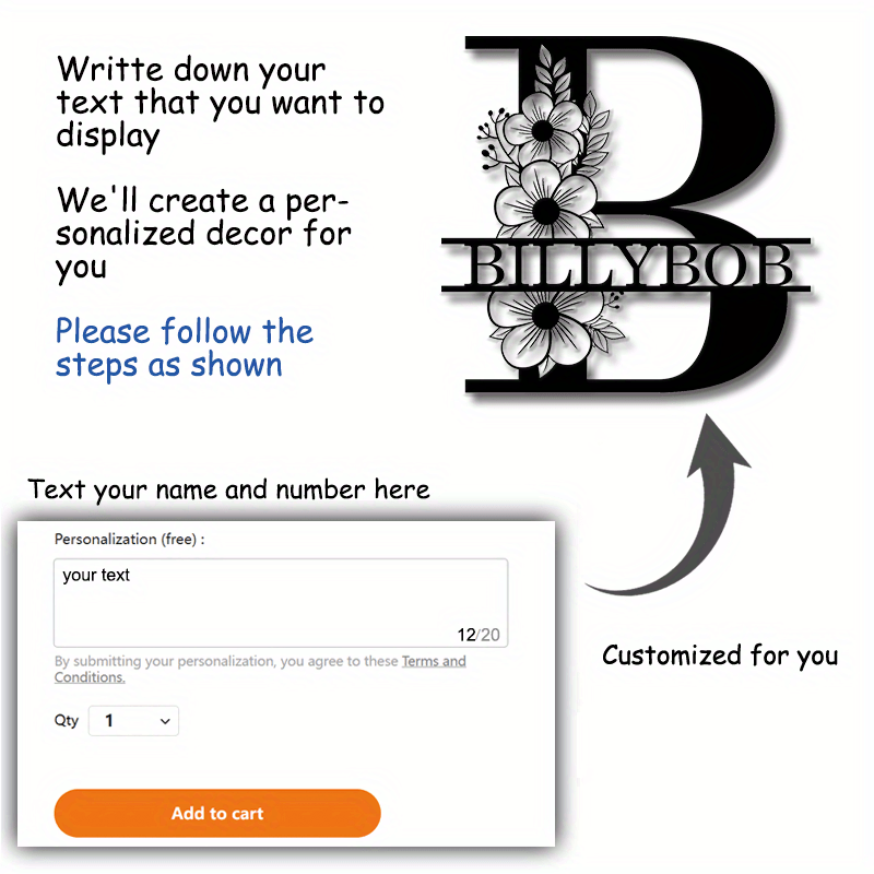 Personalized Floral Name Sign Wall Art for Home Decor and Weddings