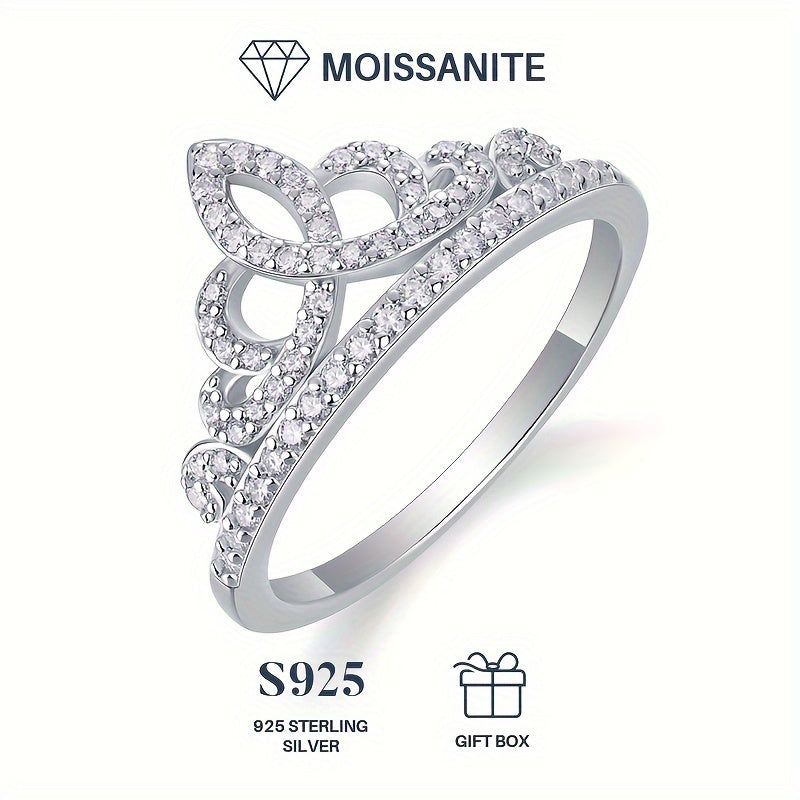 Sterling Silver Moissanite Crown Ring for Engagement Wedding Anniversary