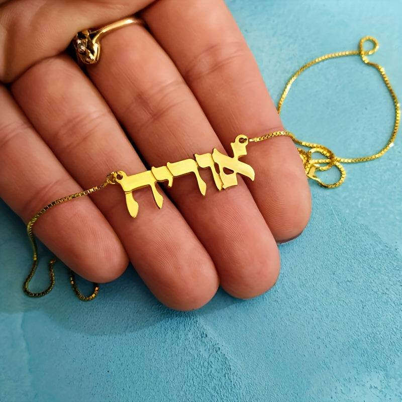 Personalized Stainless Steel Hebrew Name Necklace for Women Jewelry Gift