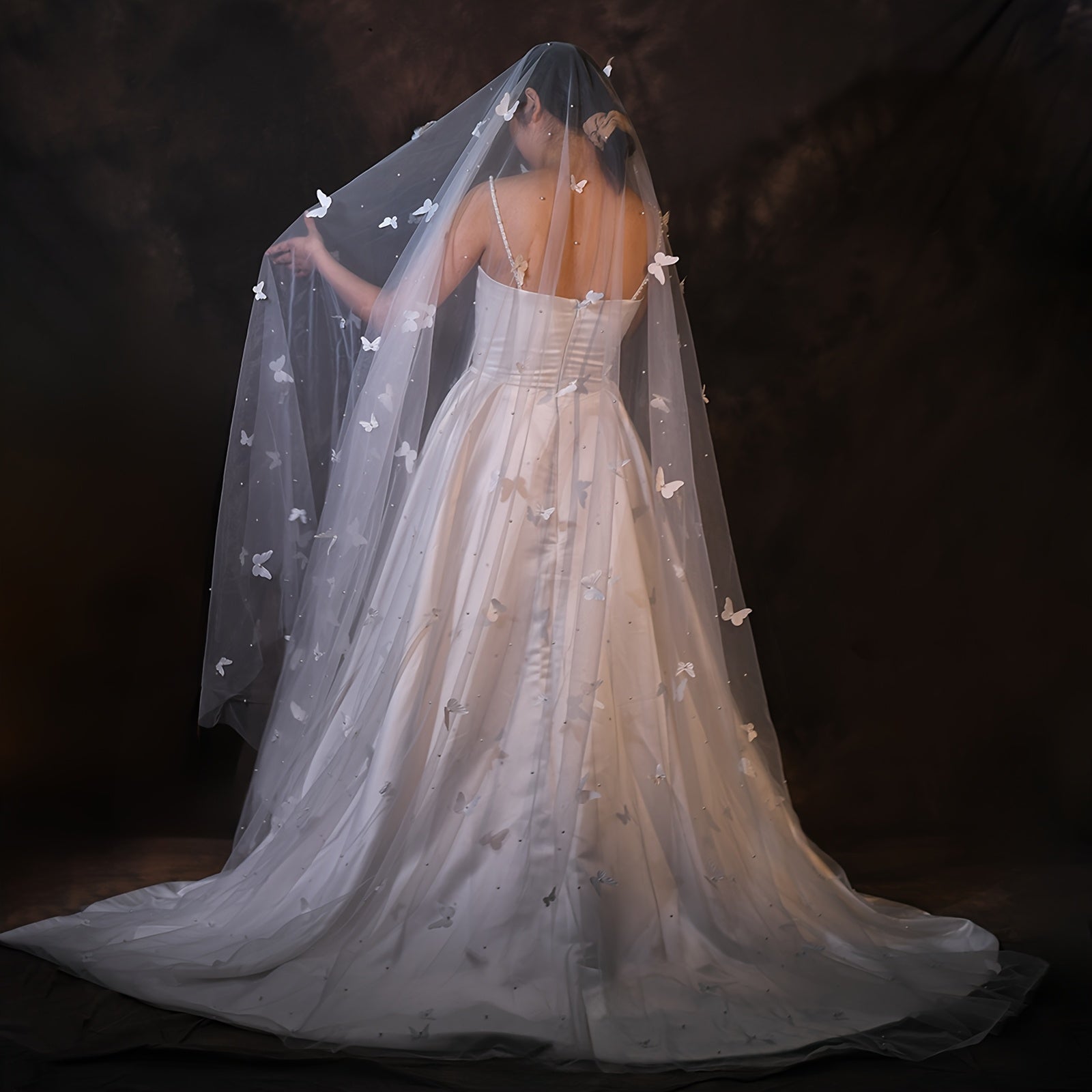 Wedding Veil Beaded Butterfly Cathedral Length Nylon Bridal Accessory